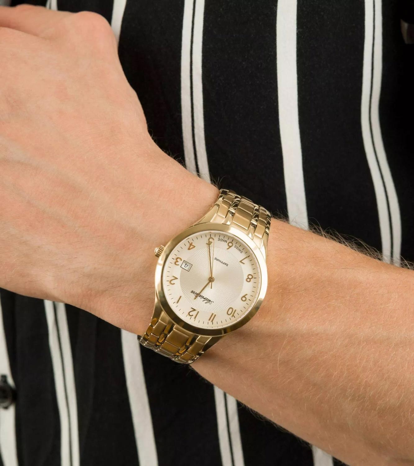 Швейцарские мужские наручные часы Adriatica Twin A1236.1121Q, кварцевый механизм с высокой точностью. Сапфировое стеклоСапфировое стеклоПрочный и надёжный материал из кристалла сапфира синтетического происхождения, характеризующийся особой твёрдостью и устойчивостью к царапинам и повреждениям. устойчивое к появлению царапин, обладающее высокой прозрачностью. Класс водозащиты: 50 метров, позволит защитить корпус от случайных брызг или капель дождя. Корпус часов изготовлен из стали с PVDPVDУльтратонкое покрытие наносится в технике вакуумного напыления, сочетает в себе нитрид титана особой прочности со слоем золота или оксида хрома. Несёт в себе декоративную или защитную функцию. покрытием. Часы оснащены оригинальным литым браслетом со съемными секциями, позволяющими регулировать длину. Циферблат цвета шампань, центр которого украшен гильошированным рисунком в виде дуг, расходящихся от центра до длинных позолоченных маркеров часа.