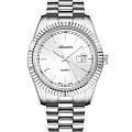 Женские кварцевые часы Adriatica A3090.5113QXL — воплощение швейцарской элегантности в классическом серебристом исполнении. Круглый корпус размером 36 мм из полированной нержавеющей стали, циферблат с солнечной текстурой Sunray и штрихами, окошко даты в положении 3 часов. Стекло — минеральноеМинеральное стеклоМинеральное стекло представляет собой искусственно выращенный минерал кварца. Такое стекло отличается особой устойчивостью к повреждениям и царапинам. Уступает по некоторым качествам сапфировому стеклу. с сапфировым покрытиемСапфировое стеклоПрочный и надёжный материал из кристалла сапфира синтетического происхождения, характеризующийся особой твёрдостью и устойчивостью к царапинам и повреждениям.. Механизм — швейцарский кварцевый Ronda 785. Водонепроницаемость 50 м. Рифлёный безельБезельВнешний ободок, закрепляющий стекло. В спортивных часах так называется поворотное кольцо с делениями на циферблате, выполняет роль таймера – замеряет отрезки времени на шкале. Неподвижный безель – элемент декора. Однонаправленно вращающийся безель на дайверских часах позволяет фиксировать моменты погружения и выныривания на поверхность. и рифлёная заводная головка подчёркивают изысканность дизайна. Браслет — стальной на раскладной застёжкеРаскладная застёжкаТакой тип застёжки используется только на браслетах из металла. Она никогда не раскрывается полностью, происходит разделение на 2 и более частей. Раскладывающая застёжка снизит вероятность потери часов к минимуму.. Идеальный выбор для тех, кто ценит швейцарское качество и утончённую классику.
