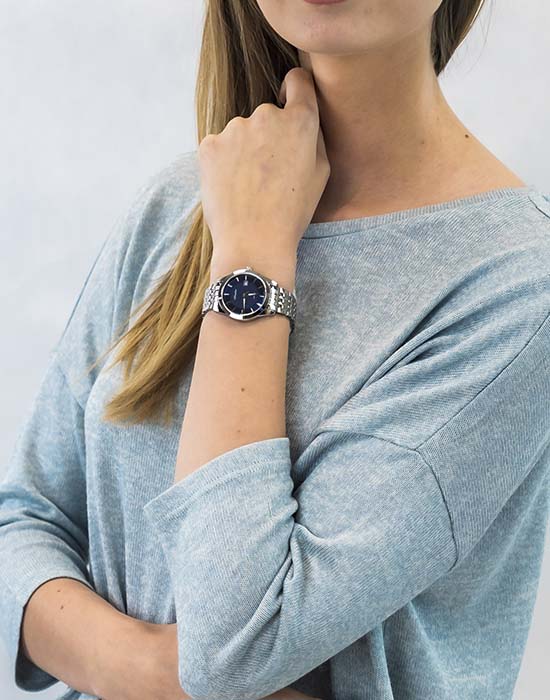 Часы Adriatica A3188.5115Q представляют собой сочетание швейцарской точности и изысканного дизайна. Эти часы из коллекции Premier созданы для тех, кто ценит утонченность и надежность. Корпус диаметром 32 мм и толщиной 8 мм выполнен из нержавеющей стали, что придает изделию элегантность и долговечность. Сердцем часов является кварцевый механизм ETA F04, обеспечивающий высокую точность хода. Сапфировое стеклоСапфировое стеклоПрочный и надёжный материал из кристалла сапфира синтетического происхождения, характеризующийся особой твёрдостью и устойчивостью к царапинам и повреждениям. защищает изящный синий циферблат, а люминесцентное покрытиеЛюминесцентное покрытиеПозволяет считывать показания времени в темноте. Производители наносят на стрелки, часовые индексы, безель или поверхность циферблата светонакопительный состав, дающий холодное свечение. на стрелках облегчает чтение времени в условиях низкой освещенности. Часы обладают водозащитой до 5 ATM, что делает их устойчивыми к случайным воздействиям воды. Стальной браслет, выполненный из нержавеющей стали, отличается комфортом и надежностью, а раскладная застёжкаРаскладная застёжкаТакой тип застёжки используется только на браслетах из металла. Она никогда не раскрывается полностью, происходит разделение на 2 и более частей. Раскладывающая застёжка снизит вероятность потери часов к минимуму. обеспечивает удобство ношения. Часы оснащены функцией отображения даты в окошке в положении 3 часа, что добавляет практичности в повседневной жизни.