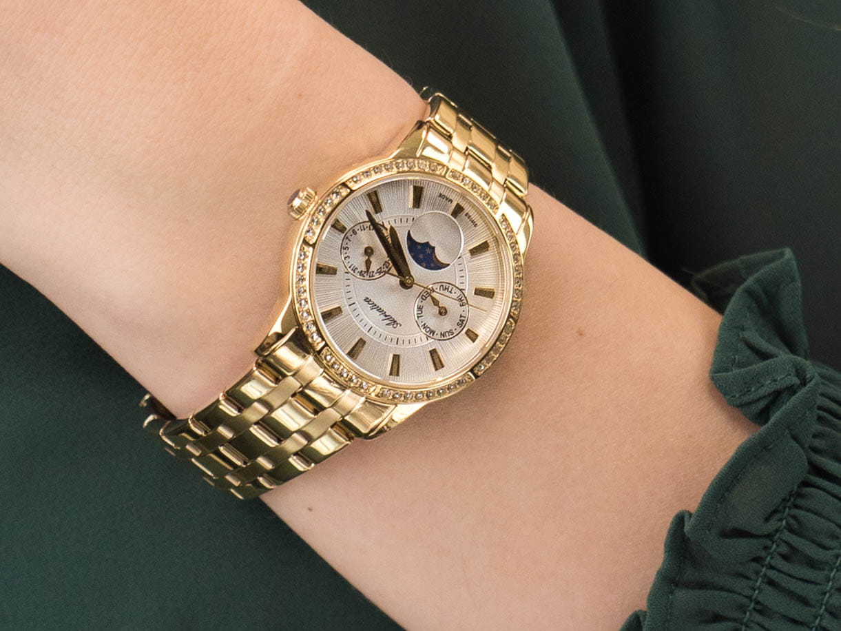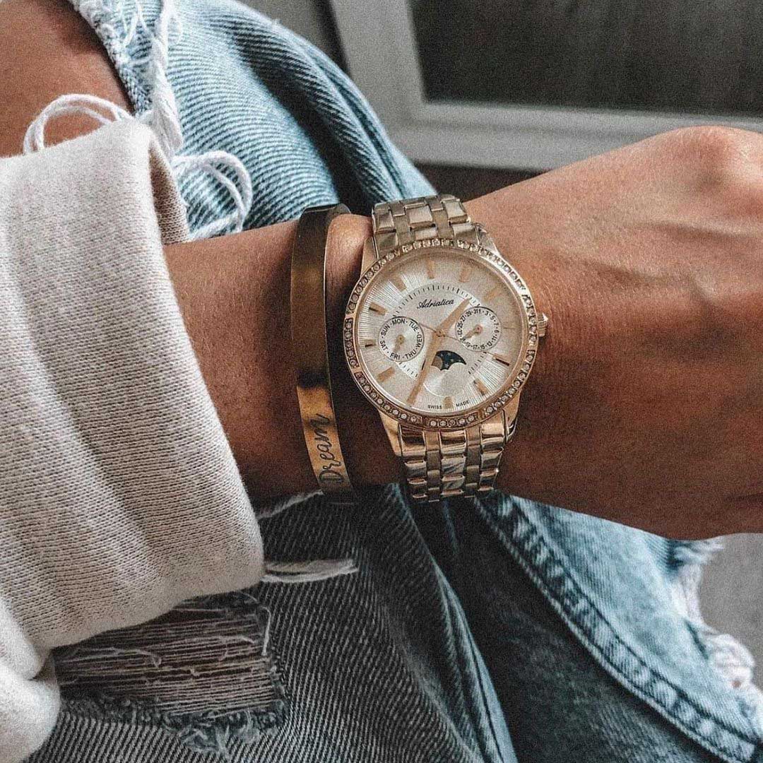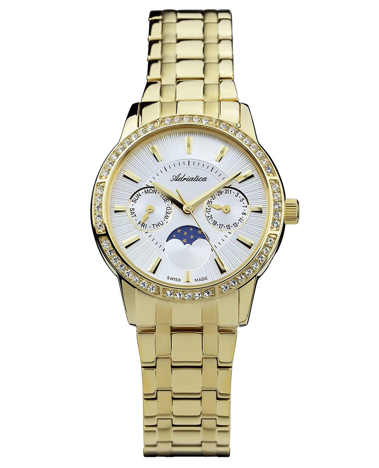 Женские часы с сапфировым стекломСапфировое стеклоПрочный и надёжный материал из кристалла сапфира синтетического происхождения, характеризующийся особой твёрдостью и устойчивостью к царапинам и повреждениям. Adriatica A3601.1113QFZ, кварцевый механизм с высокой точностью. Сапфировое стекло устойчивое к появлению царапин, обладающее высокой прозрачностью. Класс водозащиты: 50 метров, позволит защитить корпус от случайных брызг или капель дождя. Корпус часов изготовлен из стали с PVDPVDУльтратонкое покрытие наносится в технике вакуумного напыления, сочетает в себе нитрид титана особой прочности со слоем золота или оксида хрома. Несёт в себе декоративную или защитную функцию. покрытием. Браслет с раскладной застёжкойРаскладная застёжкаТакой тип застёжки используется только на браслетах из металла. Она никогда не раскрывается полностью, происходит разделение на 2 и более частей. Раскладывающая застёжка снизит вероятность потери часов к минимуму.
