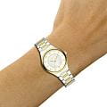 Amalys AMW-159 — женская модель с утончённым современным дизайном, в которой сочетаются минимализм и элегантность. Круглый корпус диаметром 31 мм гармонирует с браслетом с PVD-покрытиемPVDУльтратонкое покрытие наносится в технике вакуумного напыления, сочетает в себе нитрид титана особой прочности со слоем золота или оксида хрома. Несёт в себе декоративную или защитную функцию. шириной 16 мм, выполненным из нержавеющей стали и оснащённым раскладным замкомРаскладной замокДанный вариант застежки используется только на часах с металлическим браслетом. Отличительная особенность такого крепления в том, что длина браслета становится универсальной и вы можете самостоятельно отрегулировать нужный вам размер – застежка просто двигается по браслету часов., обеспечивающим удобство и надёжность при носке. БезельБезельВнешний ободок, закрепляющий стекло. В спортивных часах так называется поворотное кольцо с делениями на циферблате, выполняет роль таймера – замеряет отрезки времени на шкале. Неподвижный безель – элемент декора. Однонаправленно вращающийся безель на дайверских часах позволяет фиксировать моменты погружения и выныривания на поверхность. с PVD-покрытиемPVDУльтратонкое покрытие наносится в технике вакуумного напыления, сочетает в себе нитрид титана особой прочности со слоем золота или оксида хрома. Несёт в себе декоративную или защитную функцию.. Механизм — кварцевый, что гарантирует точный и стабильный ход. Защитную функцию выполняет сапфировое стеклоСапфировое стеклоПрочный и надёжный материал из кристалла сапфира синтетического происхождения, характеризующийся особой твёрдостью и устойчивостью к царапинам и повреждениям., стойкое к царапинам и сохраняющее прозрачность. Водозащита 5 ATM делает модель устойчивой к случайным брызгам и кратковременному контакту с водой. Лаконичный циферблат с декоративным узором и изящными стрелками подчёркивает изысканный характер часов, создавая универсальный образ, подходящий как для повседневных ситуаций, так и для особых случаев.
