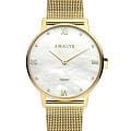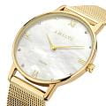 Amalys AMW-183 — женская модель с утончённым классическим дизайном, в которой сочетаются элегантность и практичность. Круглый корпус диаметром 33 мм выполнен из нержавеющей стали с PVD-покрытиемPVDУльтратонкое покрытие наносится в технике вакуумного напыления, сочетает в себе нитрид титана особой прочности со слоем золота или оксида хрома. Несёт в себе декоративную или защитную функцию., гармонирующим с браслетом шириной 16 мм в том же исполнении. Защитную функцию выполняет сапфировое стеклоСапфировое стеклоПрочный и надёжный материал из кристалла сапфира синтетического происхождения, характеризующийся особой твёрдостью и устойчивостью к царапинам и повреждениям., стойкое к царапинам и сохраняющее прозрачность. Механизм — кварцевый, обеспечивающий точность и стабильность хода. Стальной браслет с PVD-покрытиемPVDУльтратонкое покрытие наносится в технике вакуумного напыления, сочетает в себе нитрид титана особой прочности со слоем золота или оксида хрома. Несёт в себе декоративную или защитную функцию. миланского плетения на раскладном замкеРаскладной замокДанный вариант застежки используется только на часах с металлическим браслетом. Отличительная особенность такого крепления в том, что длина браслета становится универсальной и вы можете самостоятельно отрегулировать нужный вам размер – застежка просто двигается по браслету часов. который сочетает надёжность фиксации и удобство повседневного использования. Водозащита 3 ATM защищает часы от случайных брызг и дождя. Циферблат с римскими индексами и изящными стрелками подчёркивает классическую эстетику модели, делая её уместной как в повседневных образах, так и в торжественной обстановке.
