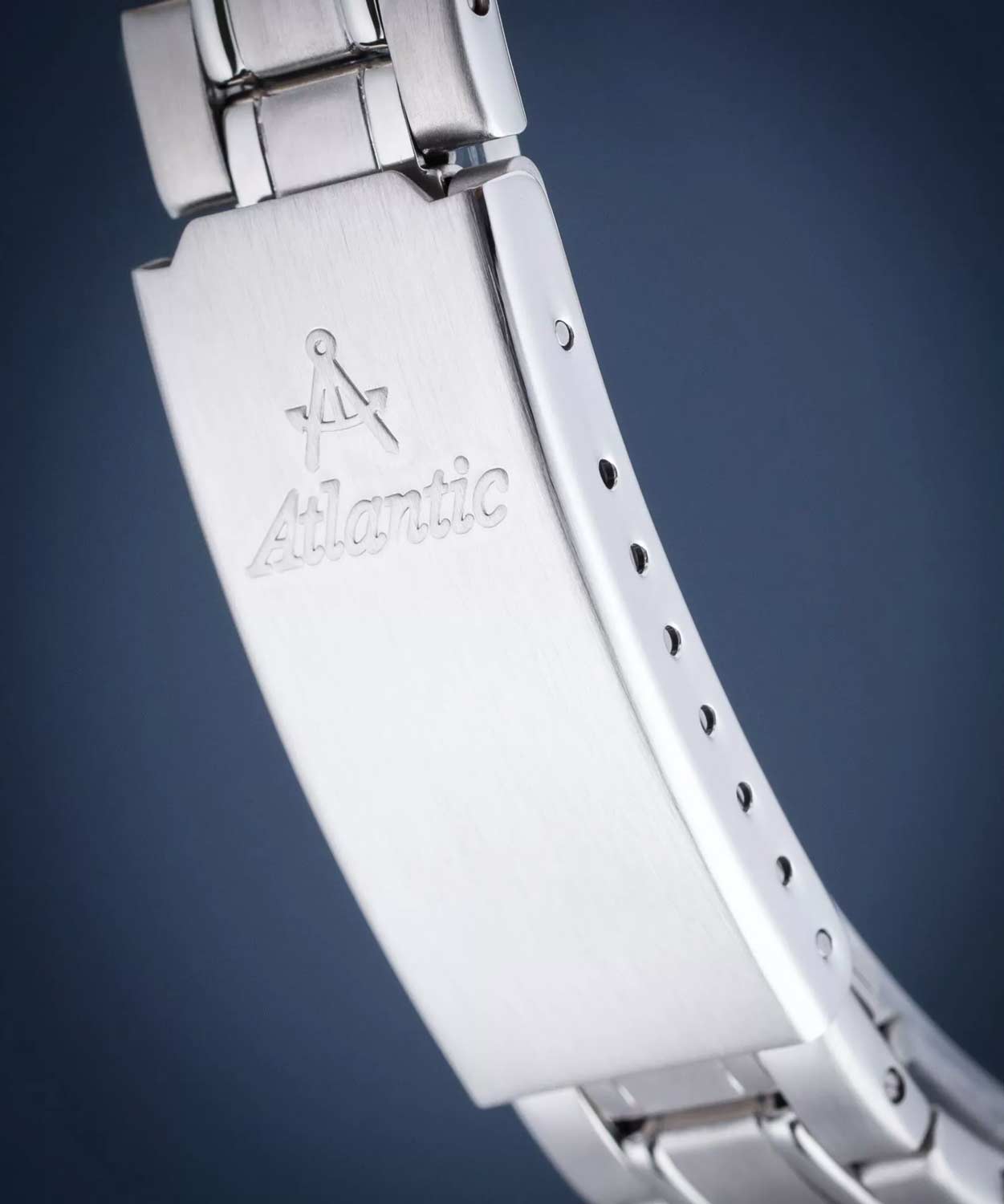 Женские швейцарские часы Atlantic Seapair Ladies 20348.41.21, кварцевый механизм с высокой точностью. Циферблат часов с люминесцентным покрытиемЛюминесцентное покрытиеПозволяет считывать показания времени в темноте. Производители наносят на стрелки, часовые индексы, безель или поверхность циферблата светонакопительный состав, дающий холодное свечение. стрелок и меток, дополнен сапфировым стекломСапфировое стеклоПрочный и надёжный материал из кристалла сапфира синтетического происхождения, характеризующийся особой твёрдостью и устойчивостью к царапинам и повреждениям., устойчивым к появлению царапин и обладающее высокой прозрачностью. Класс водозащиты: 30 метров, позволит защитить корпус от случайных брызг или капель дождя. Корпус часов изготовлен из нержавеющей стали. Стальной браслет с раскладной застёжкойРаскладная застёжкаТакой тип застёжки используется только на браслетах из металла. Она никогда не раскрывается полностью, происходит разделение на 2 и более частей. Раскладывающая застёжка снизит вероятность потери часов к минимуму.. Окошко даты находится в положении 3 часа.