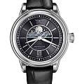 Циферблат в стиле Art Deco украшает усложнение фаз Луны в верхней половине, обрамлённой тонким кольцом облаков. Отмечено окно даты в положении «6 часов». Стрелки и накладные метки обработаны люминесцентным покрытиемЛюминесцентное покрытиеПозволяет считывать показания времени в темноте. Производители наносят на стрелки, часовые индексы, безель или поверхность циферблата светонакопительный состав, дающий холодное свечение. Superluminova — для уверенного считывания в темноте. Поверхность защищена сапфировым стекломСапфировое стеклоПрочный и надёжный материал из кристалла сапфира синтетического происхождения, характеризующийся особой твёрдостью и устойчивостью к царапинам и повреждениям. с антибликовым покрытием.