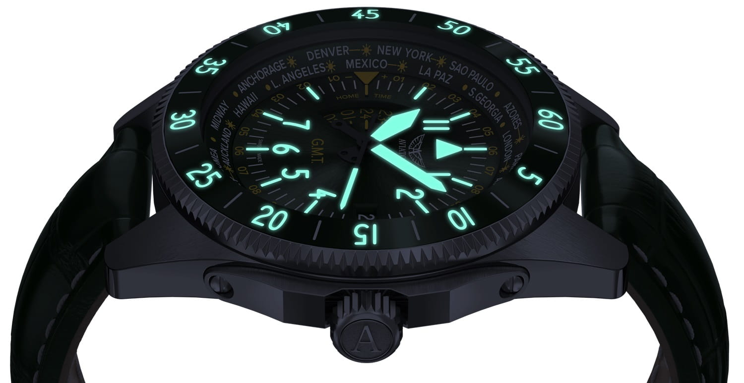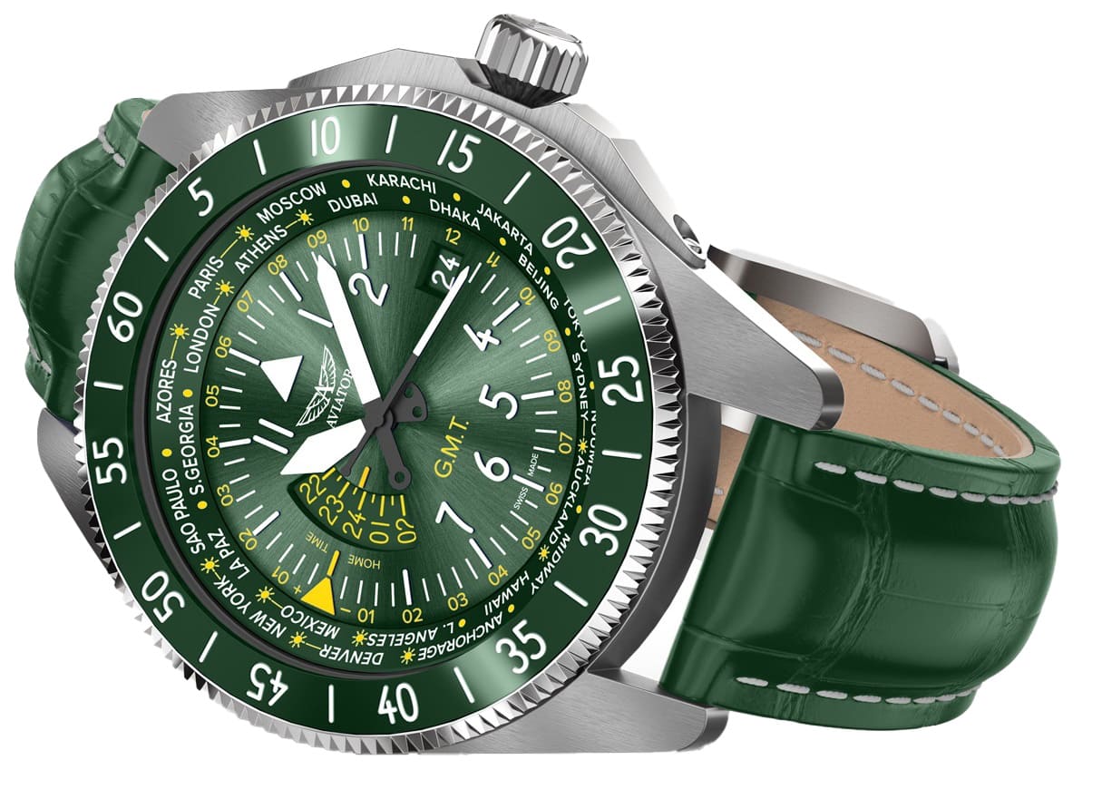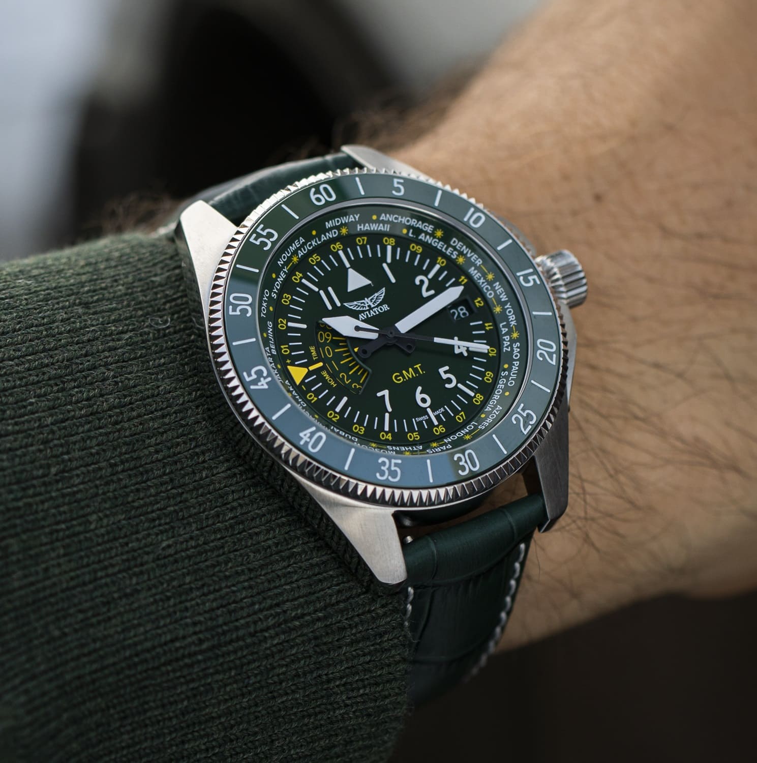 Airacobra GMT — инструментальное сочетание часовой точности, удобной функциональности GMT и авиационной эстетики, предназначенное для тех, кто ценит практичность и стиль в равной мере.