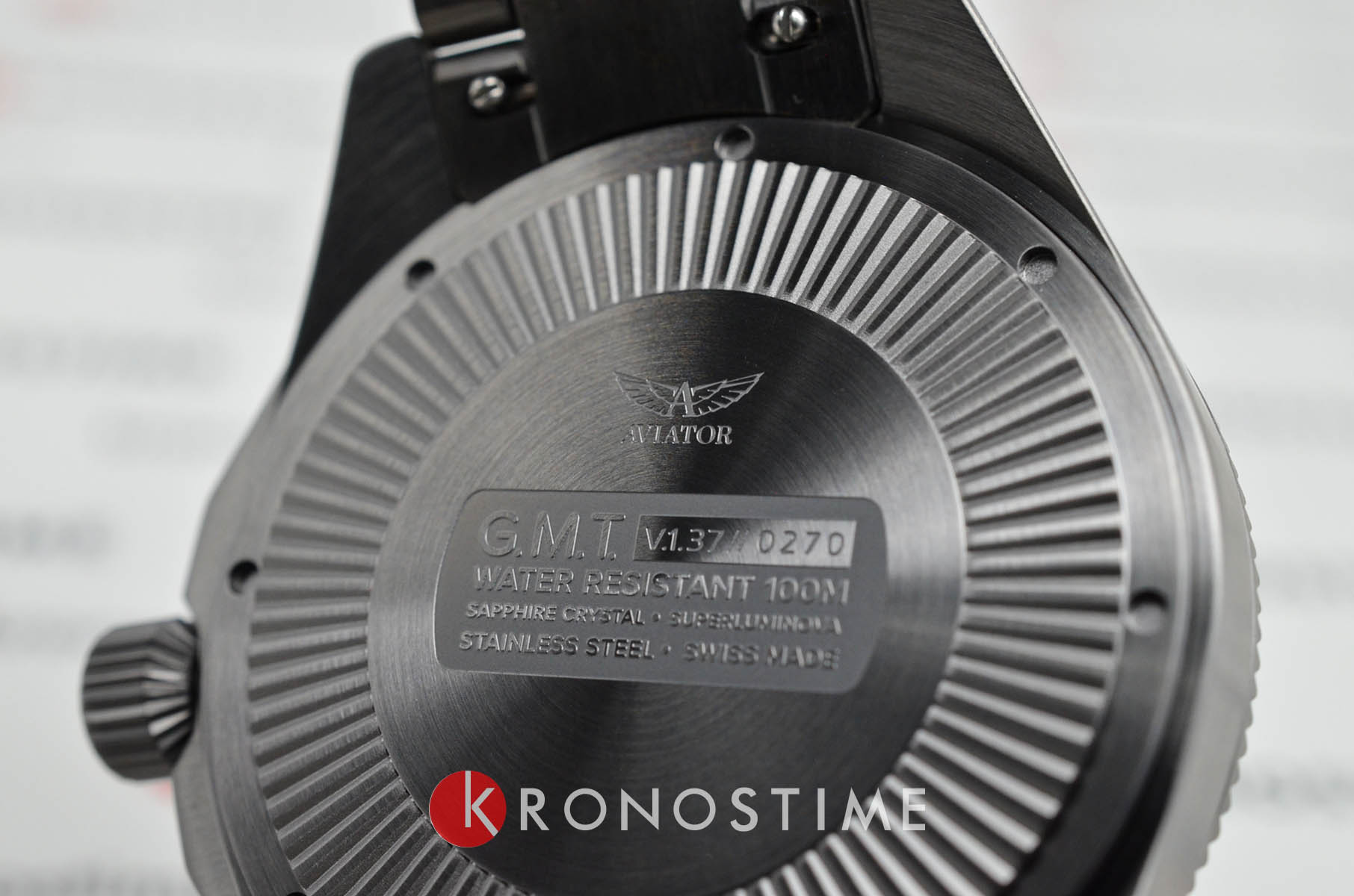 Aviator Airacobra V.1.37.7.305.5 “Airacobra GMT” — сбалансированный швейцарский пилотский GMT, сочетающий техническую строгость с удобными функциями для путешествий. Корпус диаметром 43 мм из нержавеющей стали с PVD-покрытиемPVDУльтратонкое покрытие наносится в технике вакуумного напыления, сочетает в себе нитрид титана особой прочности со слоем золота или оксида хрома. Несёт в себе декоративную или защитную функцию. обеспечивает уверенное ощущение надёжности, а герметичность до 100 м защищает при любой погоде .