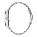 С водозащитой до 100 метров, эти часы становятся вашим верным спутником в любых водных приключениях: будь то плавание, ныряние или интенсивные спортивные тренировки. Комфортный браслет из нержавеющей стали с раскладной застёжкой обеспечивает удобное ношение и надёжную фиксацию на запястье. БезельБезельВнешний ободок, закрепляющий стекло. В спортивных часах так называется поворотное кольцо с делениями на циферблате, выполняет роль таймера – замеряет отрезки времени на шкале. Неподвижный безель – элемент декора. Однонаправленно вращающийся безель на дайверских часах позволяет фиксировать моменты погружения и выныривания на поверхность. с IP-покрытиемIP-покрытиеМетод ионного напыления. Демонстрирует повышенную устойчивость к истиранию, окислению и химическим веществам. Под воздействием высокого давления и температуры около 1500°C молекулы металла надёжно соединяются с частицами корпуса часов..
