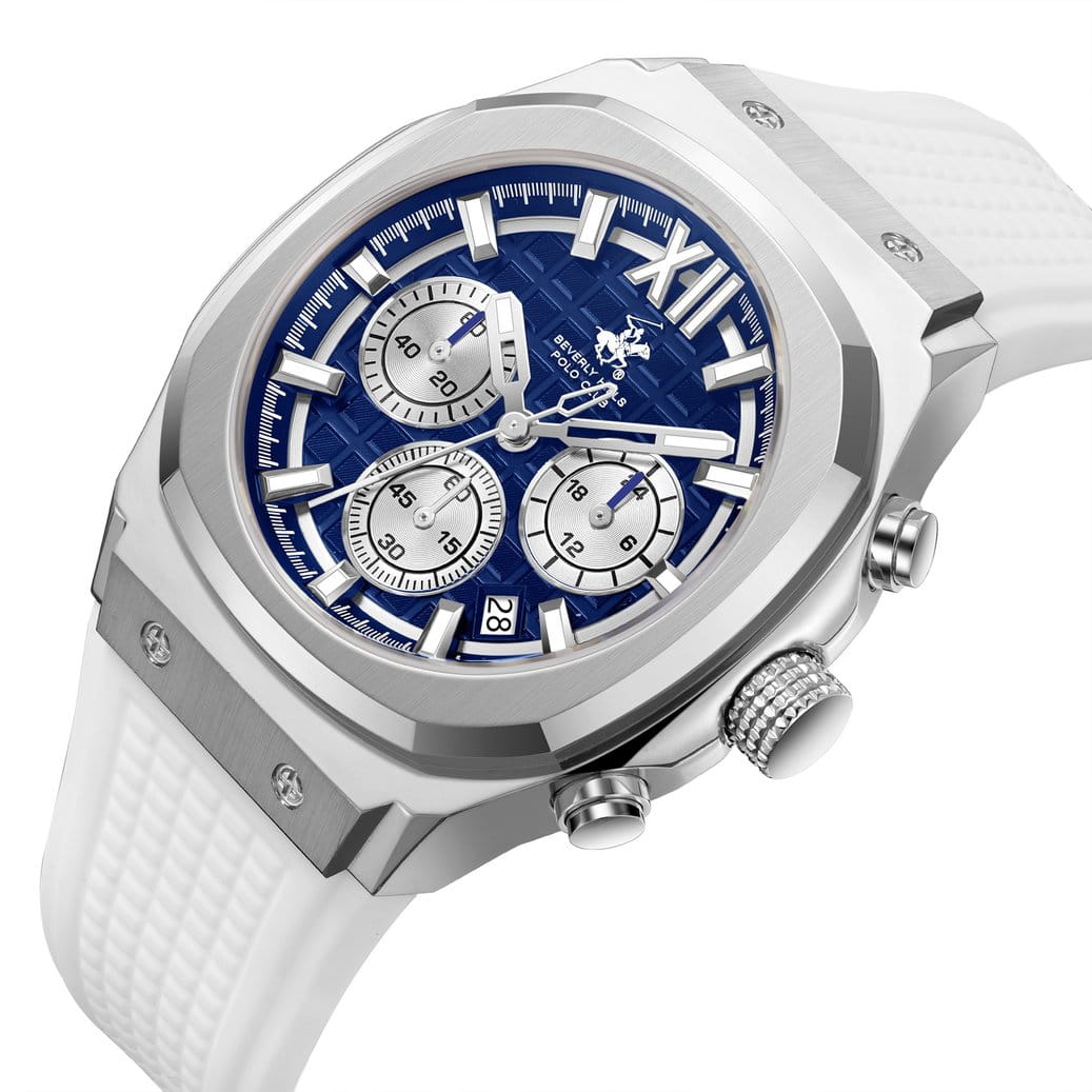 Американские мужские часы Beverly Hills Polo Club BP3785X.393 - это стильный мужской хронографХронографФункция позволяет измерять отрезки времени с особой точностью: часы, минуты, секунды. Верным признаком хронографа является наличие на циферблате 3 дополнительных окошек-счётчиков., который сочетает элегантный дизайн и практичность. Корпус выполнен из нержавеющей стали серебристого цвета, диаметром 45,5 мм. Надежное минеральное стеклоМинеральное стеклоМинеральное стекло представляет собой искусственно выращенный минерал кварца. Такое стекло отличается особой устойчивостью к повреждениям и царапинам. Уступает по некоторым качествам сапфировому стеклу. с сапфировым покрытием защищает циферблат от царапин и обеспечивает долговечность. Модель оснащена кварцевым механизмом, обеспечивающим высокую точность хода. Каучуковый ремешок на стандартной застежке обеспечивает комфортное ношение. Функциональность модели расширена за счёт индикации даты и дополнительным 24-х часовым индикатором. Стрелки и метки с люминесцентным покрытиемЛюминесцентное покрытиеПозволяет считывать показания времени в темноте. Производители наносят на стрелки, часовые индексы, безель или поверхность циферблата светонакопительный состав, дающий холодное свечение. позволяют легко считывать время даже в условиях недостаточного освещения. Водозащита 50 метров позволит защитить корпус от случайных брызг или капель дождя. Эта модель – отличный выбор для тех, кто ищет сочетание стиля, качества и функциональности. Часы станут не только полезным аксессуаром, но и выразительным элементом вашего имиджа.