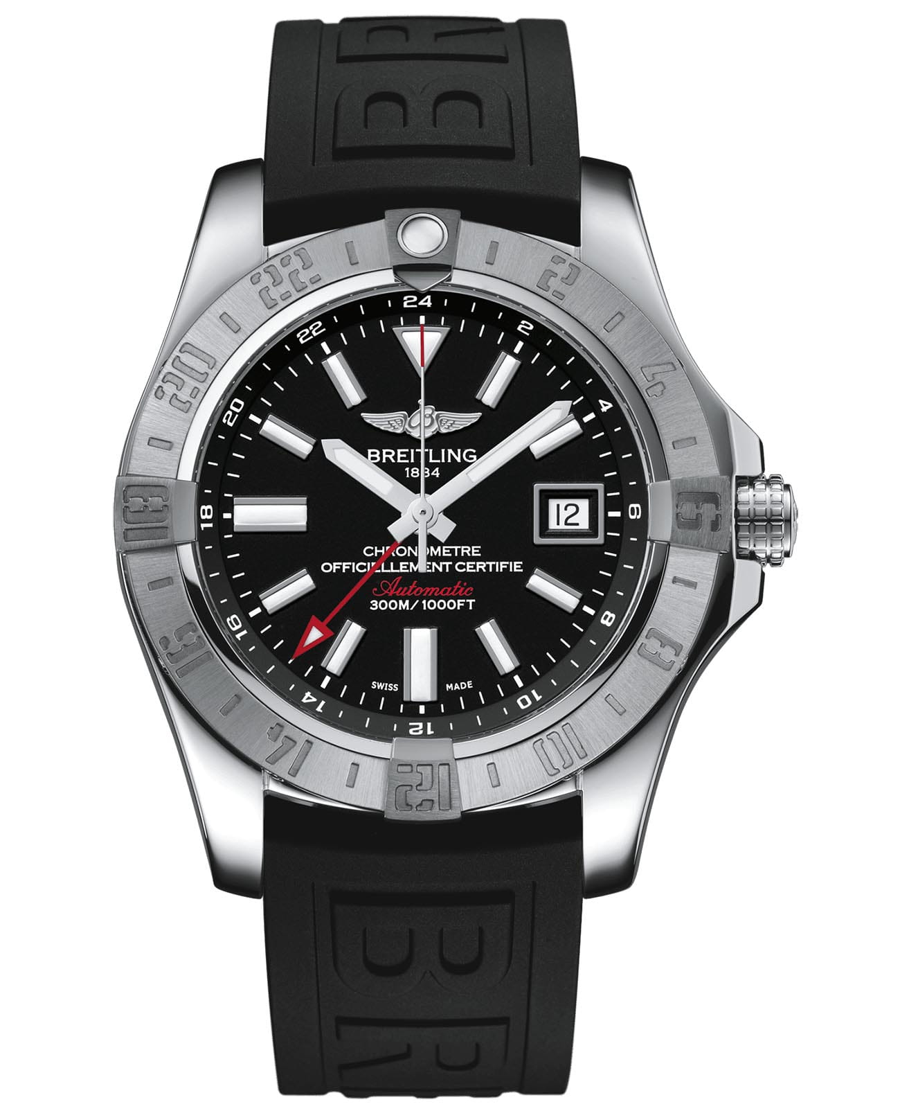 Мужские швейцарские часы Breitling Avenger II GMT A32390111B1S2, механический механизм (автоматический калибр) Breitling 32 с высокой точностью. Выпуклое сапфировое стекло устойчивое к появлению царапин, обладающее высокой прозрачностью и антибликовым покрытием с обеих сторон.