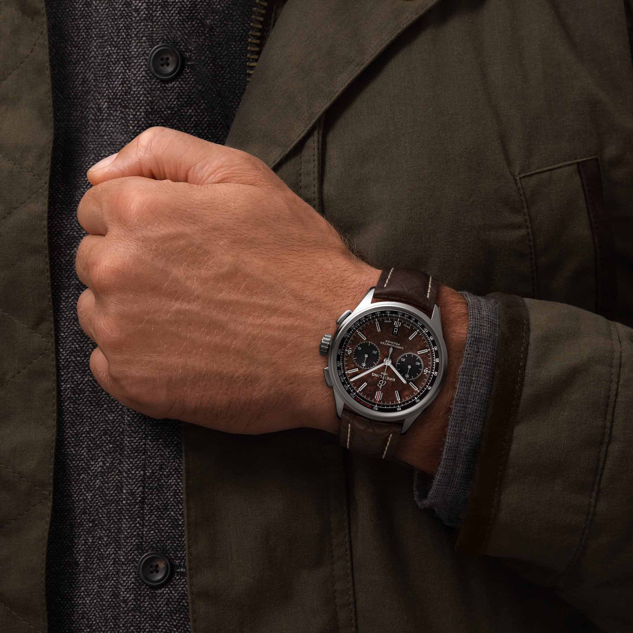 Модель Bentley Centenary Limited Edition в корпусе из нержавеющей стали дополнена ремешком из телячьей кожи коричневого цвета с ромбовидным узором. Эта модель отличается уникальном коричневом циферблатом из капа вяза: таково было оформление деревянной панели приборов на культовом Bentley 1929 года выпуска – его восхищенные фанаты называли Blower. Пилотами этого гоночного автомобиля с турбированным двигателем объемом 4½ л в 20-х годах прошлого столетия были сэр Тим Биркин и экипаж легендарной команды Bentley Boys. На основном циферблате расположены дополнительные циферблаты, выполненные в контрастном черном цвете, а также черный внутренний безель с белой тахиметрической шкалой и надписью TACHYMETER красного цвета. На левой стороне корпуса диаметром 42 мм располагается гравировка логотипа Bentley, дизайн которой напоминает приборную панель исторического автомобиля Bentley Blower 1929 года выпуска. Под стальным корпусом скрыт мануфактурный механизм Breitling Manufacture Caliber 01, который за многие годы доказал свою надежность и эффективность. За его работой можно наблюдать сквозь уникальную прозрачную заднюю крышку корпуса, украшенную логотипом Bentley. На задней крышке часов выгравирована надпись 1 OF 1000.