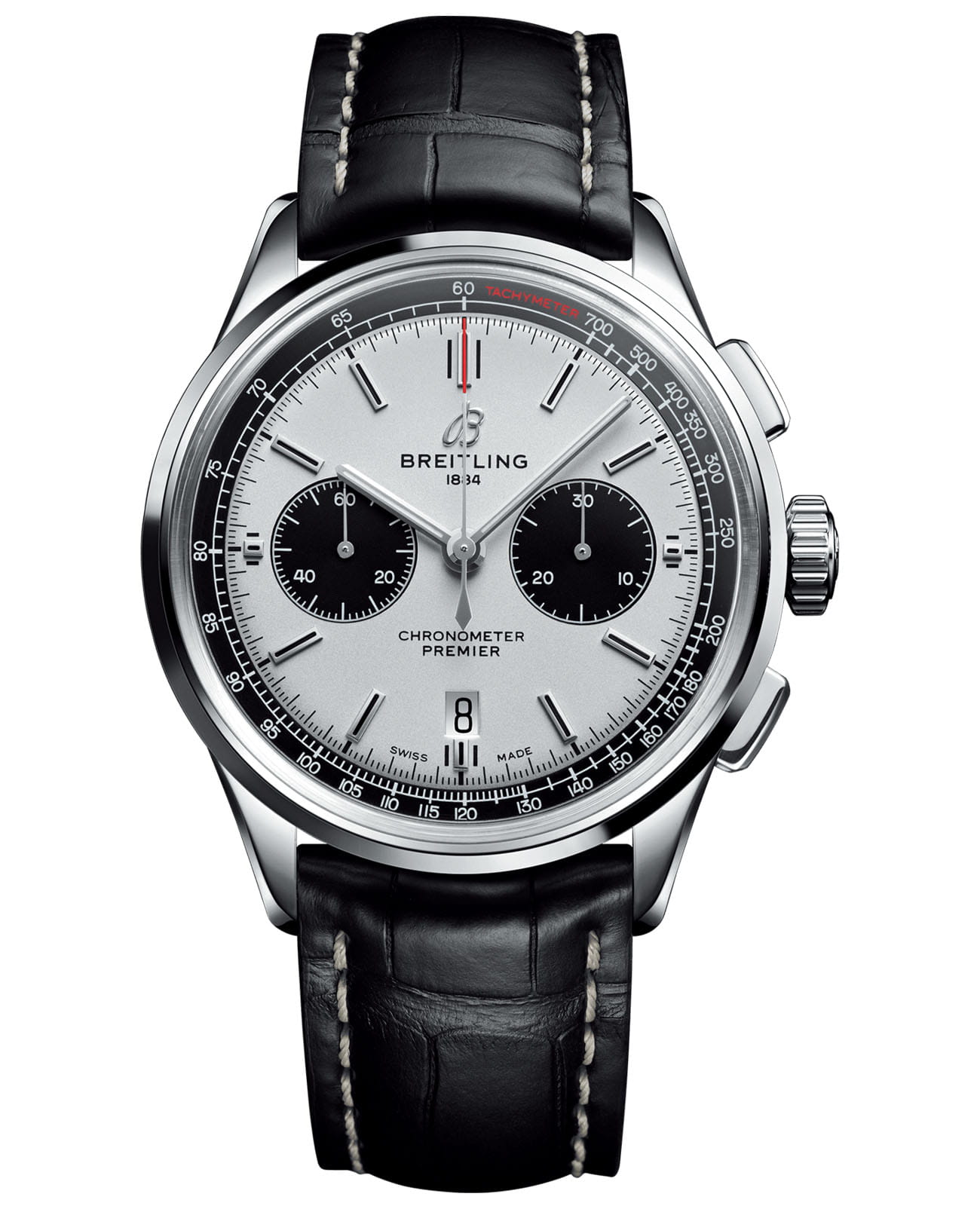 Часы Premier, разработанные Вилли Брайтлингом в 40-х годах прошлого века, стали первой моделью бренда, которая задумывалась в первую очередь как стильный аксессуар. Современная версия Premier, как и ее историческая предшественница, отличается элегантностью и изысканными деталями в стиле ретро, которые подчеркивают безупречный стиль своего владельца. Квадратные кнопки хронографаХронографФункция позволяет измерять отрезки времени с особой точностью: часы, минуты, секунды. Верным признаком хронографа является наличие на циферблате 3 дополнительных окошек-счётчиков., циферблат «панда», характерный для хронографов с компоновкой bi-compax, бороздки по бокам корпуса и прозрачная задняя крышка из сапфирового стеклаСапфировое стеклоПрочный и надёжный материал из кристалла сапфира синтетического происхождения, характеризующийся особой твёрдостью и устойчивостью к царапинам и повреждениям. – все эти детали создают оригинальный внешний вид модели.