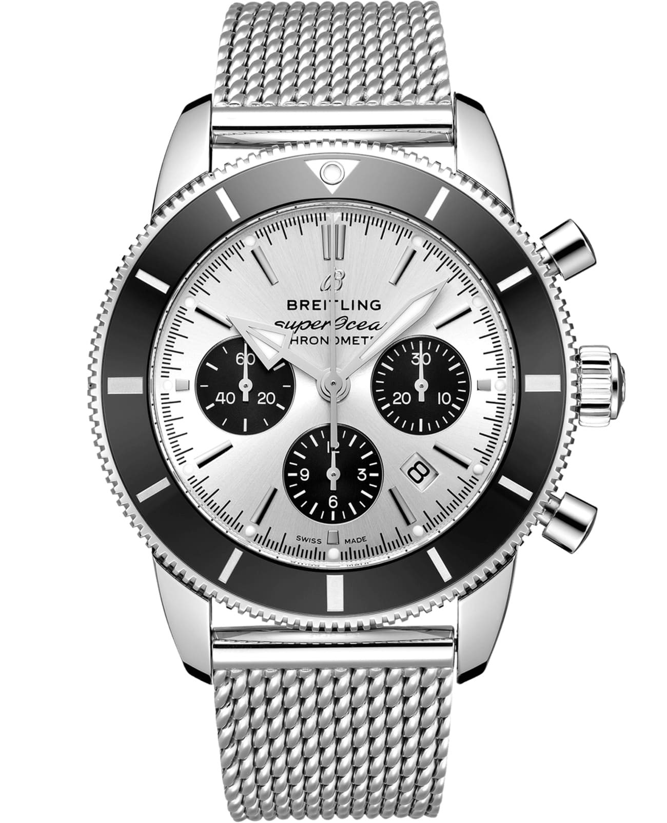 Покупатель может выбрать одну из понравившихся ему версий с циферблатом черного, синего, серебристого или зеленого цвета. Модель предлагается в комплекте с плетеным браслетом или каучуковым ремешком с узором в виде плетения с раскладной застежкой. Внутри корпуса спрятан калибр собственной разработки Breitling Manufacture Caliber 01, сертифицированный Швейцарским институтом официального тестирования хронометров (COSC).