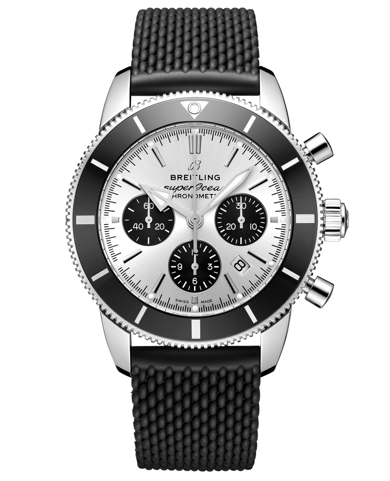 Мужские швейцарские часы Breitling Superocean Heritage B01 Chronograph 44 AB0162121G1S1, механический механизм с высокой точностью Breitling Manufacture Caliber 01, сертифицированный Швейцарским институтом официального тестирования хронометров (COSC). Выпуклое сапфировое стекло устойчивое к появлению царапин, обладающее высокой прозрачностью и антибликовым покрытием с обеих сторон.