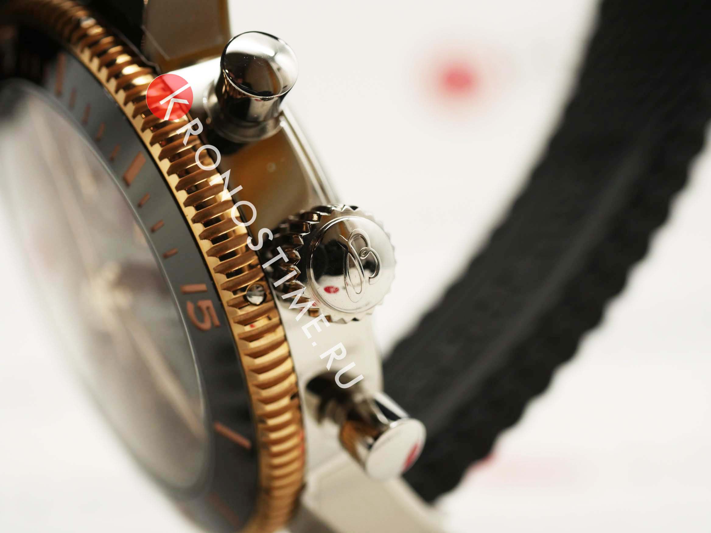 Корпус часов изготовлен из нержавеющей стали и 18-каратного красного золота. Черный каучуковый ремешок с застежкой, открывающейся нажатием кнопки. Класс водозащиты: 200 метров, позволит плавать, нырять и заниматься другими водными видами спорта.