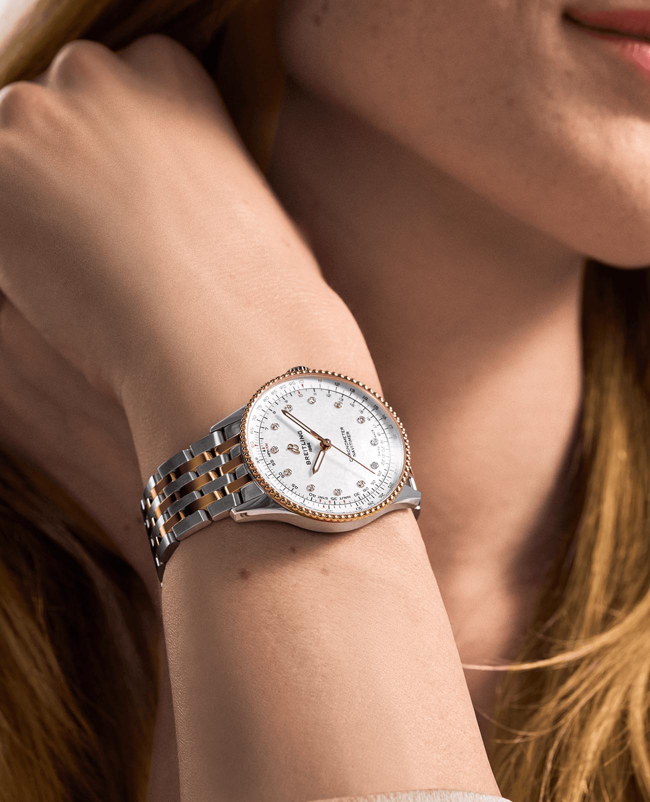 Швейцарские унисекс часы-хронометр Breitling Navitimer Automatic 36 U17327211A1U1, механический механизм (автоматический калибр) с высокой точностью. Сапфировое стеклоСапфировое стеклоПрочный и надёжный материал из кристалла сапфира синтетического происхождения, характеризующийся особой твёрдостью и устойчивостью к царапинам и повреждениям. устойчивое к появлению царапин, обладающее высокой прозрачностью. Класс водозащиты: 30 метров, позволит защитить корпус от случайных брызг или капель дождя. Корпус часов изготовлен из нержавеющей стали. Браслет из нержавеющей стали и красного 18-каратного золота18-каратное золотоОбозначение по каратной системе пробирования, оно показывает, сколько драгоценного металла содержится в изделии. 18 карат - в составе 75% чистого золота, соответствует 750 пробе.