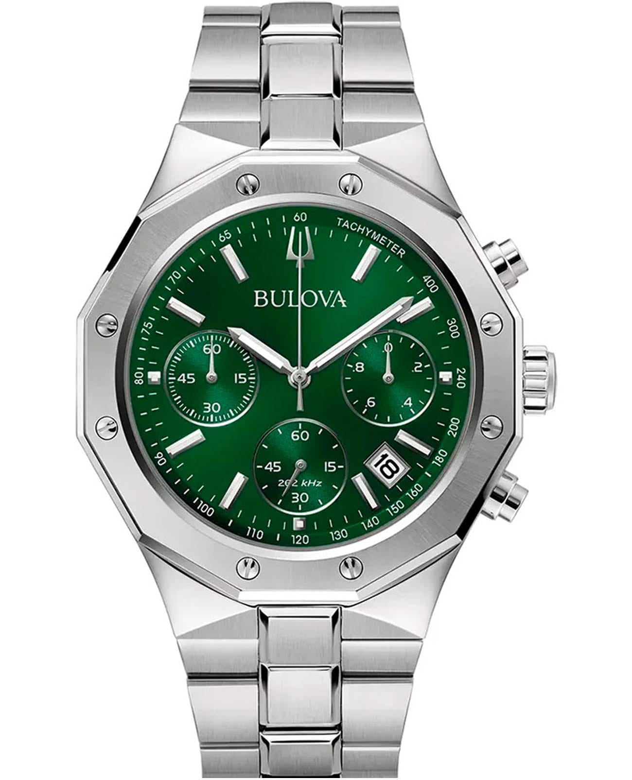 Мужские кварцевые часы-хронографХронографФункция позволяет измерять отрезки времени с особой точностью: часы, минуты, секунды. Верным признаком хронографа является наличие на циферблате 3 дополнительных окошек-счётчиков. Bulova Classic 96B409  – отражающий идеальное сочетание современного дизайна, надёжности и функциональности. Элегантный облик станет превосходным завершением образа, наделив его индивидуальным характером. Корпус из нержавеющей стали, диаметром 44 мм идеально сбалансирован и элегантен. Минеральное стеклоМинеральное стеклоМинеральное стекло представляет собой искусственно выращенный минерал кварца. Такое стекло отличается особой устойчивостью к повреждениям и царапинам. Уступает по некоторым качествам сапфировому стеклу. защищает циферблат от царапин и устойчивое к мелким механическим повреждениям. Шкала тахиметраТахиметрРазмеченная шкала, располагается на ободке или безеле часов. Тахиметр позволяет рассчитать скорость на определённом участке пути, расстояние измеряется в километрах или милях. на циферблате. Стальной браслет на раскладной застёжкеРаскладная застёжкаТакой тип застёжки используется только на браслетах из металла. Она никогда не раскрывается полностью, происходит разделение на 2 и более частей. Раскладывающая застёжка снизит вероятность потери часов к минимуму. обеспечивает комфортное ношение. Стрелки и метки с люминесцентным покрытиемЛюминесцентное покрытиеПозволяет считывать показания времени в темноте. Производители наносят на стрелки, часовые индексы, безель или поверхность циферблата светонакопительный состав, дающий холодное свечение. позволяющие легко определять время даже в темноте. Водозащита 100 метров, позволит плавать, нырять и заниматься другими водными видами спорта. Окошко даты находится в положении между 4 и 5 часов. Эта модель – отличный выбор для тех, кто ищет сочетание стиля, качества и функциональности. Часы станут не только полезным аксессуаром, но и выразительным элементом вашего имиджа.