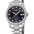 Женские швейцарские наручные часы Candino Elegance C4740/5 с надёжным кварцевым механизмом. Корпус и браслет часов изготовлены из нержавеющей стали. Сапфировое стеклоСапфировое стеклоПрочный и надёжный материал из кристалла сапфира синтетического происхождения, характеризующийся особой твёрдостью и устойчивостью к царапинам и повреждениям. устойчивое к мелким механическим повреждениям. Стальной браслет на раскладной застёжкеРаскладная застёжкаТакой тип застёжки используется только на браслетах из металла. Она никогда не раскрывается полностью, происходит разделение на 2 и более частей. Раскладывающая застёжка снизит вероятность потери часов к минимуму.. БезельБезельВнешний ободок, закрепляющий стекло. В спортивных часах так называется поворотное кольцо с делениями на циферблате, выполняет роль таймера – замеряет отрезки времени на шкале. Неподвижный безель – элемент декора. Однонаправленно вращающийся безель на дайверских часах позволяет фиксировать моменты погружения и выныривания на поверхность. инкрустирован цирконами. Окошко даты находится в положении 3 часа.