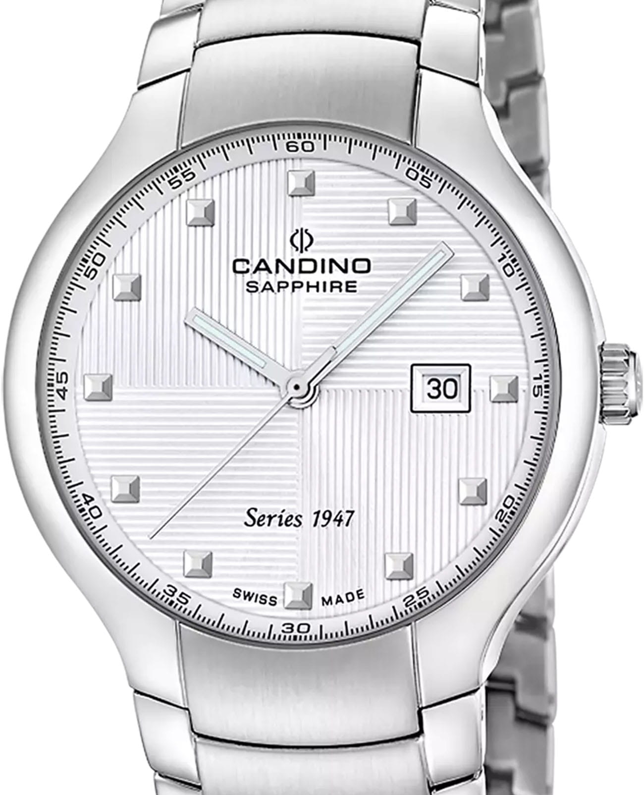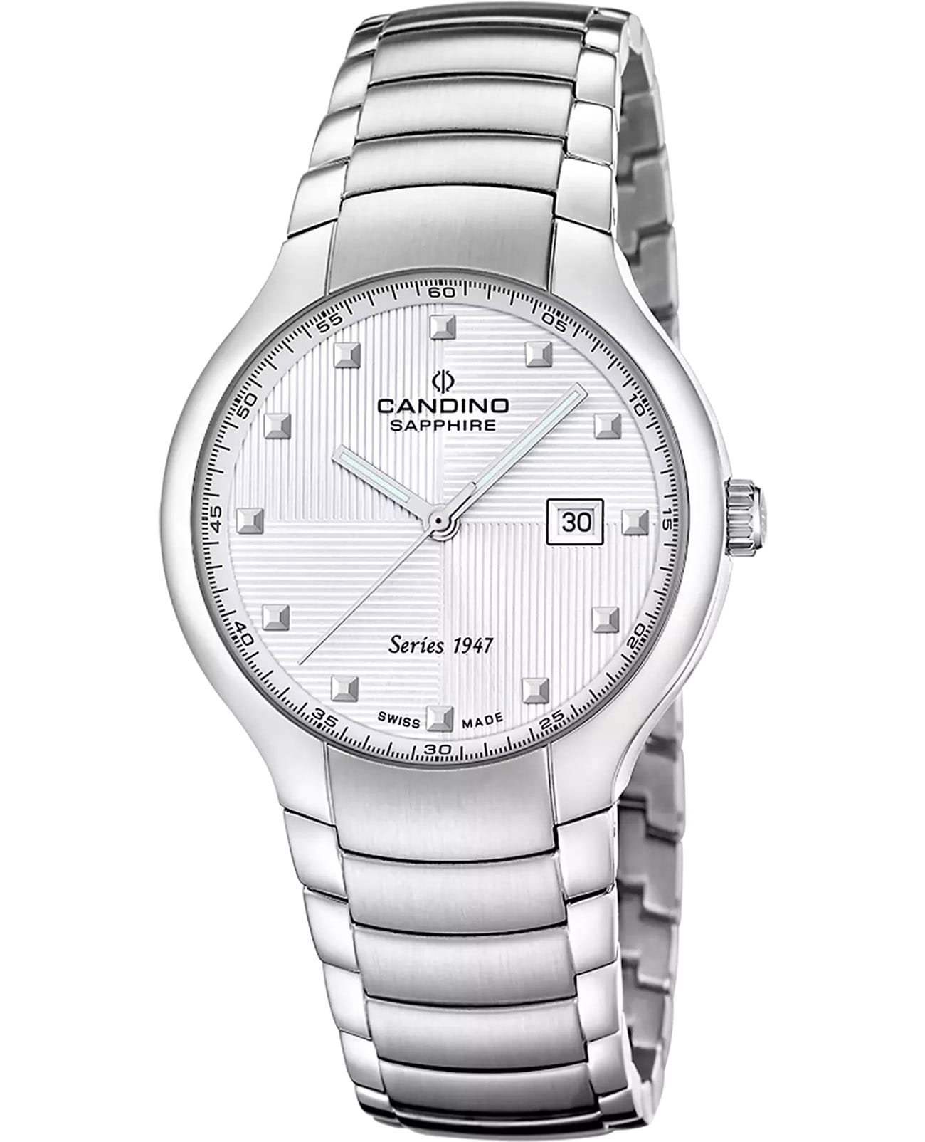 Мужские кварцевые часы Candino — это сочетание классического дизайна и швейцарского качества. Корпус диаметром 40 мм и толщиной 9,3 мм выполнен из нержавеющей стали. Циферблат серебристого цвета оформлен индексами и стрелками. Окошко даты расположено в положении 3 часов. Циферблат защищён сапфировым стекломСапфировое стеклоПрочный и надёжный материал из кристалла сапфира синтетического происхождения, характеризующийся особой твёрдостью и устойчивостью к царапинам и повреждениям., устойчивым к царапинам. Механизм — кварцевый калибр Ronda 705, произведённый в Швейцарии. Часы оснащены стальным браслетом с застёжкой «бабочка» с кнопкамиЗастёжка "бабочка"Такой вид застёжки дополняется предохранителями, помогающими избежать случайного раскрытия браслета. Обладают изящным исполнением. . Водонепроницаемость 100 м позволяет использовать часы в повседневных условиях. Гарантия — 2 года. Идеальный выбор для тех, кто ценит стиль, точность и надёжность.