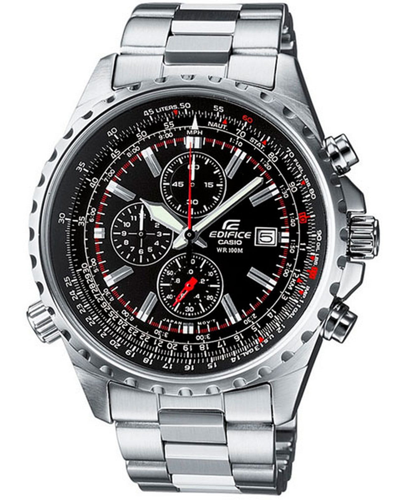 Мужские классические наручные часы Casio Edifice надежные и практичные. Кварцевый японский механизм Miyota. Точность хода не хуже -10 +15 сек./в месяц. Часы оснащены функцией хронографа и тахиметра. Циферблат черного цвета с контрастными индексами. Стрелки и индексы с светонакопительным нанесением. Корпус и браслет выполнены из высококачественной стали с антикоррозийными свойствами. Минеральное стекло устойчиво к появлению царапин. Водонепроницаемость 100М. В часах можно плавать. Степень водонепроницаемости не является величиной, эквивалентной функциональной рабочей глубине.