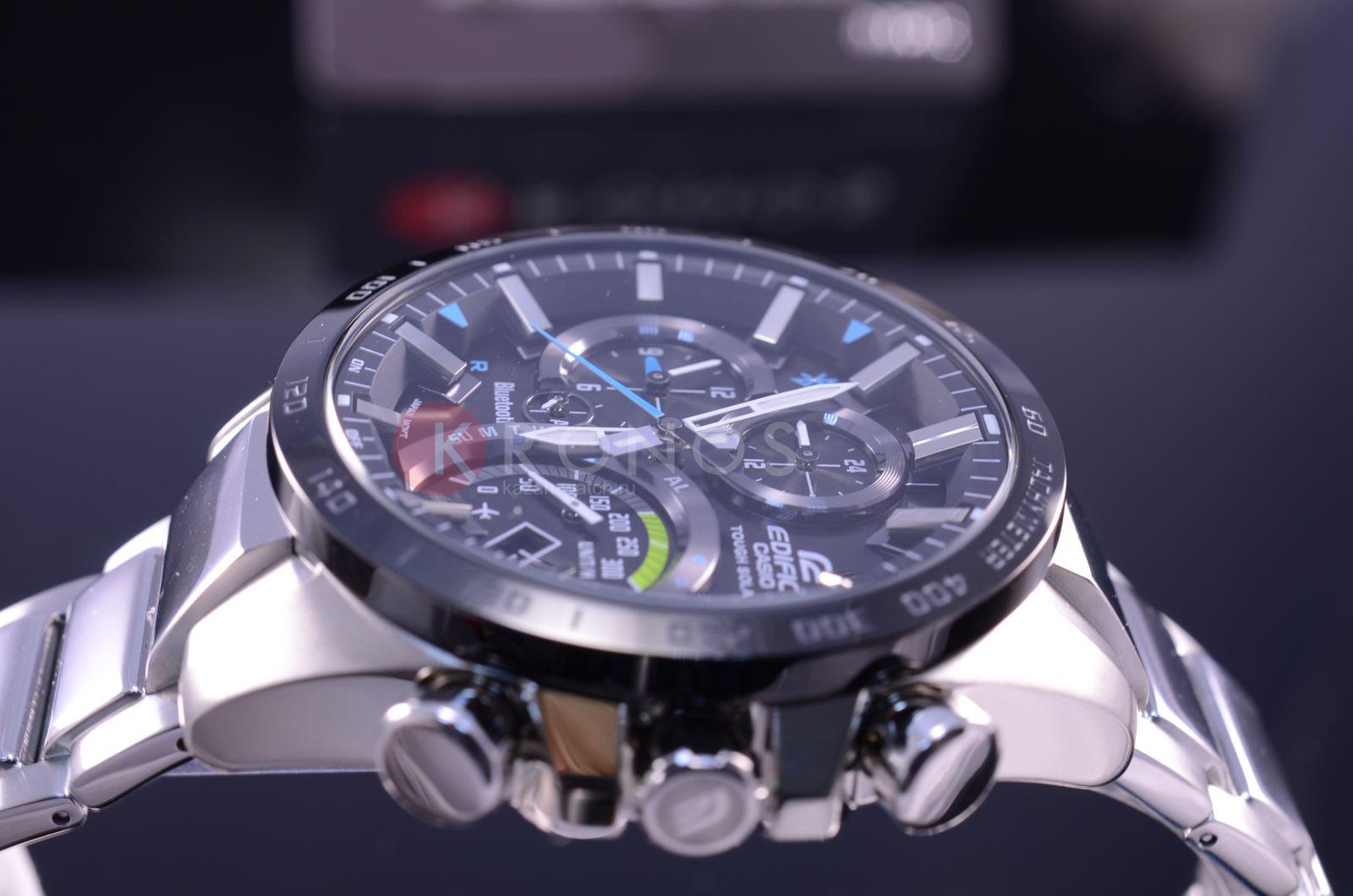 Компанией Casio была представлена новая модель часов - EQB-501 Изделие может подключаться к смартфону через Bluetooth, это дает возможность владельцу часов всегда знать точное время, где бы он не находился Стильный дизайн EQB-501 сразу бросается в глаза: строгий черный цвет и элементы синего оттенка на циферблате выделят владельца часов и подчеркнут его серьезность и статусность Отдельным преимуществом новинки является совмещенное взаимодействие со смартфоном владельца: на часах отображаются всевозможные уведомления и сообщения, которые приходят на телефон Также имеется функция поиска телефона: если по какой-то причине гаджет не удается найти, стоит только нажать кнопку на часах, как телефон сразу начнет издавать звуковые сигналы EQB-501 полностью автономны - заряжаются они при помощи солнечной батареи
