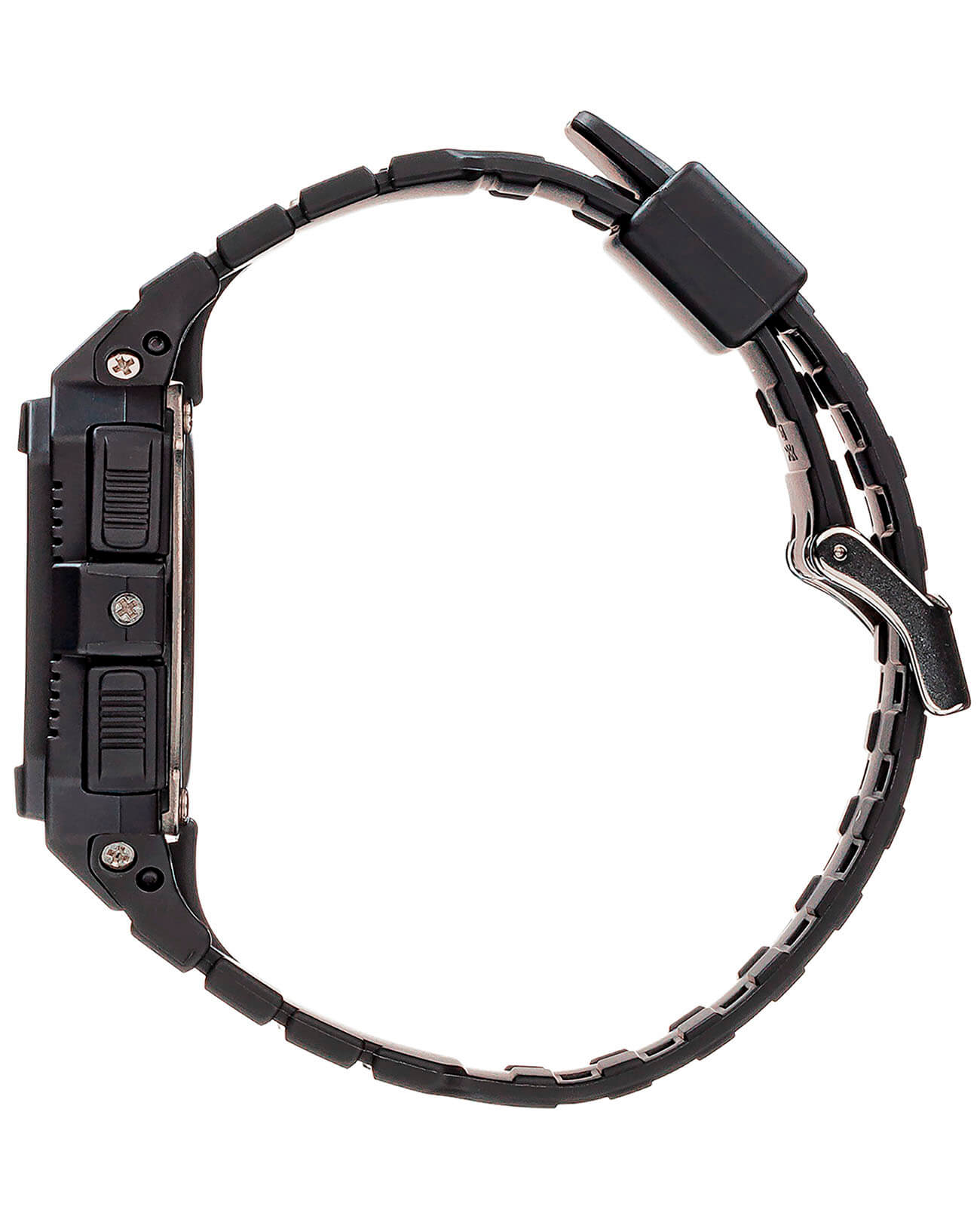 Олдскульные часы в монохромной чёрной гамме, напоминающие модели 1985-ого года, имеют матовую поверхность. Такое исполнение позволяет сочетать аксессуар с любой одеждой, он будет органично смотреться в любой ситуации. Модель с инверсионным дисплеем обладает противоударным корпусомУдаропрочный корпусМеханизм заключён в корпус, выполненный из современных материалов, устойчивых к ударам, механическим повреждениям и падению с высоты: инновационный пластик, карбон, нержавеющая сталь, титан. из полимерного пластика, материал отличается устойчивостью к повреждениям и падениям. Японский кварцевый калибр с точностью хода -/+15 секунд в месяц. Срок службы батарейки составляет 10 лет. Водонепроницаемость 20 бар. Электролюминесцентная подсветкаЭлектролюминесцентная подсветкаЭлектролюминесцентная панель устанавливается под ЖК-экраном часов, при нажатии кнопки электричество преобразуется в свет за счёт подачи напряжения на атомы фосфора, такой тип подсветки позволяет освещать весь циферблат.. Минеральное стекло. 12/24-часовое отображение времени. Секундомер, мировое времяМировое время Полезное часовое усложнение, отображающее время в основных городах и известных областях по всему миру, оно связано с часовыми поясами, удобно для путешественников и бизнесменов. , будильник, хронографХронографФункция позволяет измерять отрезки времени с особой точностью: часы, минуты, секунды. Верным признаком хронографа является наличие на циферблате 3 дополнительных окошек-счётчиков., календарь до 2099 года, таймер. Габариты: 45,4 x 46,2 x 13,6 мм.