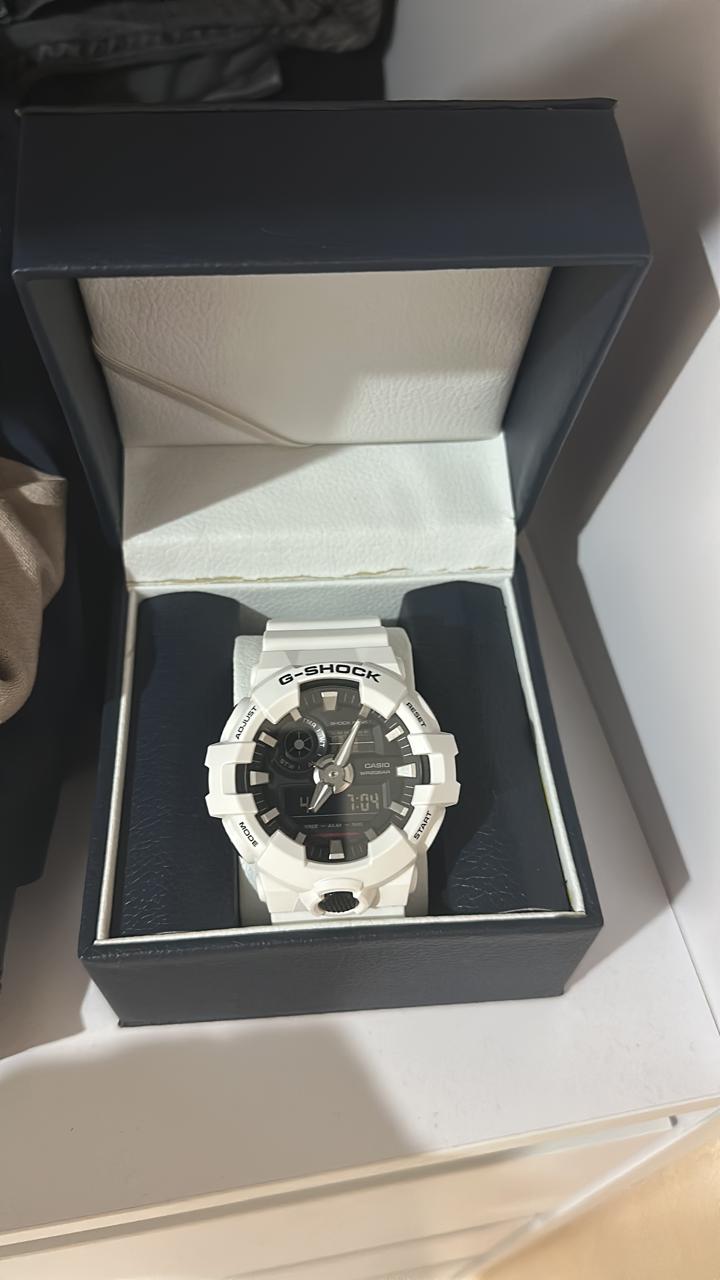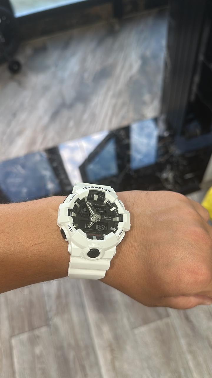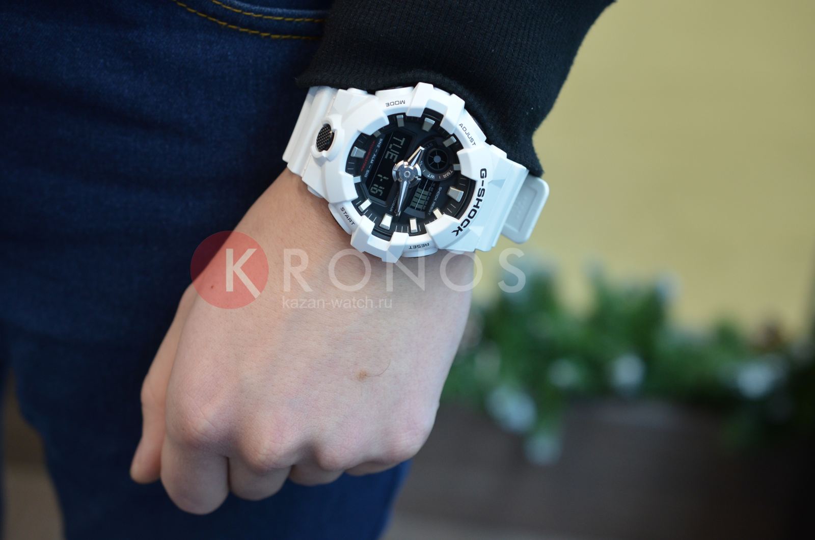 Японские мужские часы-хронографХронографФункция позволяет измерять отрезки времени с особой точностью: часы, минуты, секунды. Верным признаком хронографа является наличие на циферблате 3 дополнительных окошек-счётчиков. Casio G-Shock GA-700-7AER. Противоударный пластиковый корпус с карбоновыми волокнами более прочный и, в то же время, более легкий. Минеральное стеклоМинеральное стеклоМинеральное стекло представляет собой искусственно выращенный минерал кварца. Такое стекло отличается особой устойчивостью к повреждениям и царапинам. Уступает по некоторым качествам сапфировому стеклу. устойчивое к появлению царапин, обладающее высокой прозрачностью. Ударопрочный корпусУдаропрочный корпусМеханизм заключён в корпус, выполненный из современных материалов, устойчивых к ударам, механическим повреждениям и падению с высоты: инновационный пластик, карбон, нержавеющая сталь, титан. защищает механизм от ударов и вибрации. Многокомпонентный циферблат состоит из цифровых окошек указателей числа и дня недели, а также индикатора режима работы часов, который расположен в позиции 9 часов и выполнен в виде пропеллера. Светодиодная автоподсветка NeobriteПодсветка NeobriteИспользование светонакопительных составов на основе сульфида цинка или алюмината стронция, яркий свет можно наблюдать на протяжении 6-10 часов после «зарядки» часов около источника света. - при повороте часов в сторону лица подсветка дисплея осуществляется автоматически. Настраиваемое послесвечение 1,5 или 3сек. Мировое времяМировое время Полезное часовое усложнение, отображающее время в основных городах и известных областях по всему миру, оно связано с часовыми поясами, удобно для путешественников и бизнесменов. – 48 городов (29 часовых поясов). СекундомерСекундомерСекундоме́р — прибор, способный измерять интервалы времени с точностью до долей секунды. с точностью измерения 1/100 секунды и измерением до 23 часов 59 минут 59,99 cек. ТаймерТаймерОтсчитывает секунды в обратном направлении в заданном интервале времени. обратного отсчета (диапазон времени 24 часа), автоматический календарь, 12/24 отображение времени. 5 будильниковБудильникБуди́льник — часы, в заданный момент времени подающие звуковой, световой и/или в редких случаях другой сигнал., один с функцией Snooze, ежечасный сигнал. Класс водозащиты: 200 метров, позволит плавать, нырять и заниматься другими водными видами спорта. Ремешок из полимерного материала на стандартной застежке.