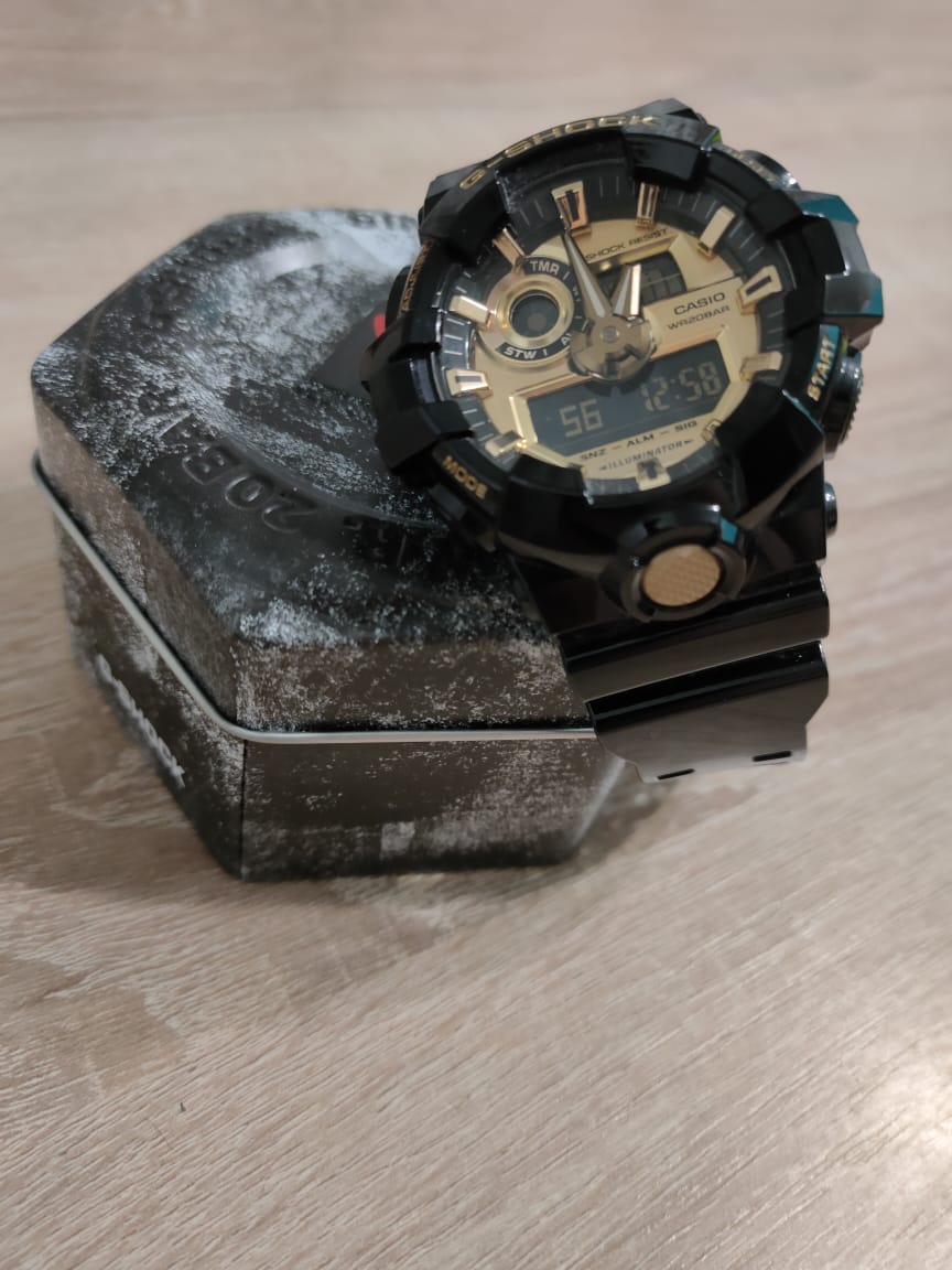 Наручные часы серии G-Classic Collection сразу бросаются в глаза за счёт золотистого циферблата с продуманным расположением деталей. Универсальный аксессуар представлен в спортивном стиле и обладает крупной индикацией времени. Глянцевый противоударный корпусУдаропрочный корпусМеханизм заключён в корпус, выполненный из современных материалов, устойчивых к ударам, механическим повреждениям и падению с высоты: инновационный пластик, карбон, нержавеющая сталь, титан. и ремешок изготовлены из полимерного пластика, такой материал высоко ценится за счёт устойчивости к ударам и повреждениям. Японский кварцевый механизм работает от батарейки CR2016, рассчитанной на 5 лет использования. Минеральное стекло. Удобная кнопка светодиодной подсветкиСветодиодная подсветкаСветодиодная или LED-подсветка обеспечивает появление яркого холодного свечения за счёт LED-элементов - маленьких лампочек. Они потребляют минимальное количество энергии, чаще всего можно встретить 1 светодиод, в нижней части циферблата. на лицевой части. Водозащита 200 метров. 12/24-отображение времени. Секундомер, мировое времяМировое время Полезное часовое усложнение, отображающее время в основных городах и известных областях по всему миру, оно связано с часовыми поясами, удобно для путешественников и бизнесменов. - 31 часовой пояс, таймер, хронографХронографФункция позволяет измерять отрезки времени с особой точностью: часы, минуты, секунды. Верным признаком хронографа является наличие на циферблате 3 дополнительных окошек-счётчиков., 5 будильников, UTCUTCВсемирное кординационное время, не имеющее привязки к географическому положению Гринвича, основывается на атомном отсчёте времени. Регулировка времени осуществляется более точно, чем устаревшее GMT.