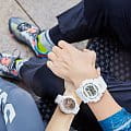 Наручные часы в белоснежном исполнении идеально смотрятся на запястье, они станут грамотным дополнением к повседневному или спортивному стилю одежды. Они оснащены высокоточным шагомером с измерением количества шагов от 0 до 999999, в мобильном приложении G-Shock Connected Phone можно хранить данные физической активности и устанавливать ежедневную норму, это позволяет осуществить технология BluetoothBluetoothСовременная технология, позволяющая синхронизировать часы с телефоном и переносить данные. Часы с Bluetooth расширяют возможности вашего смартфона и делают его использование ещё более удобным.. Японский кварцевый калибр. Эксплуатационный срок батарейки составляет 3 года. Надёжный противоударный корпусУдаропрочный корпусМеханизм заключён в корпус, выполненный из современных материалов, устойчивых к ударам, механическим повреждениям и падению с высоты: инновационный пластик, карбон, нержавеющая сталь, титан. из полимерного пластика. Минеральное стекло устойчиво к царапинам. Двойная подсветка: стрелки с люминесцентным покрытиемЛюминесцентное покрытиеПозволяет считывать показания времени в темноте. Производители наносят на стрелки, часовые индексы, безель или поверхность циферблата светонакопительный состав, дающий холодное свечение., циферблат подсвечивается светодиодомСветодиодная подсветкаСветодиодная или LED-подсветка обеспечивает появление яркого холодного свечения за счёт LED-элементов - маленьких лампочек. Они потребляют минимальное количество энергии, чаще всего можно встретить 1 светодиод, в нижней части циферблата.. Водостойкость до 20 бар. Мировое времяМировое время Полезное часовое усложнение, отображающее время в основных городах и известных областях по всему миру, оно связано с часовыми поясами, удобно для путешественников и бизнесменов. , таймер, автоматический календарь до 2099 года, будильник, хронографХронографФункция позволяет измерять отрезки времени с особой точностью: часы, минуты, секунды. Верным признаком хронографа является наличие на циферблате 3 дополнительных окошек-счётчиков., секундомер. Габариты: 54,1 x 48,6 x 15,5 мм.