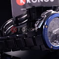 , таймер, секундомер, мировое времяМировое время Полезное часовое усложнение, отображающее время в основных городах и известных областях по всему миру, оно связано с часовыми поясами, удобно для путешественников и бизнесменов. , 5 будильников, хронографХронографФункция позволяет измерять отрезки времени с особой точностью: часы, минуты, секунды. Верным признаком хронографа является наличие на циферблате 3 дополнительных окошек-счётчиков., календарь. Габариты: 52,4 x 59,1 x 16,1 мм.