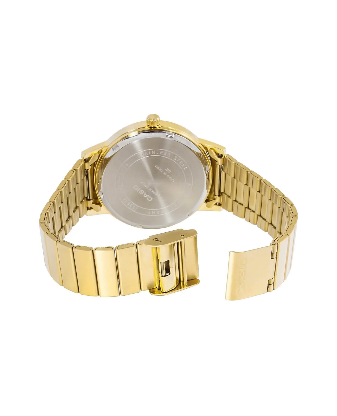 Японские женские кварцевые часы с минеральным стекломМинеральное стеклоМинеральное стекло представляет собой искусственно выращенный минерал кварца. Такое стекло отличается особой устойчивостью к повреждениям и царапинам. Уступает по некоторым качествам сапфировому стеклу. Casio Collection LTP-E118G-1A, кварцевый механизм с высокой точностью. Японские женские часы из коллекции LTP изящно смотрятся на запястье, они привлекают классическим исполнением. Минималистичная модель станет отличным решением для любого случая: на работу, переговоры с деловыми партнёрами, прогулку с друзьями или праздничный вечер. Корпус часов изготовлен из нержавеющей стали с IP-покрытиемIP-покрытиеМетод ионного напыления. Демонстрирует повышенную устойчивость к истиранию, окислению и химическим веществам. Под воздействием высокого давления и температуры около 1500°C молекулы металла надёжно соединяются с частицами корпуса часов.. Класс водозащиты: 50 метров, позволит защитить корпус от случайных брызг или капель дождя. Стальной браслет с IP-покрытиемIP-покрытиеМетод ионного напыления. Демонстрирует повышенную устойчивость к истиранию, окислению и химическим веществам. Под воздействием высокого давления и температуры около 1500°C молекулы металла надёжно соединяются с частицами корпуса часов. на раскладной застёжкеРаскладная застёжкаТакой тип застёжки используется только на браслетах из металла. Она никогда не раскрывается полностью, происходит разделение на 2 и более частей. Раскладывающая застёжка снизит вероятность потери часов к минимуму..