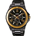 Надежные мужские наручные часы. Корпус - Нержавеющая сталь; Стекло - Минеральное; Водозащита - 100 м. (WR 100); Материал ремешка - Нержавеющая сталь + IP покрытие; Цвет ремешка - Черный; Цвет циферблата - Черный.