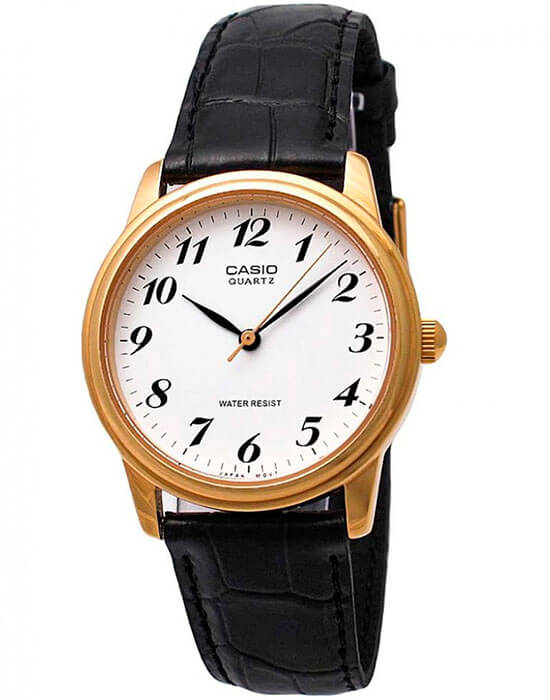 Часы с идеальными формами и стильной цветовой расцветкой выгодно подчеркнут любой модный образ. Золотистый круглый корпус из латуни добавляет аксессуару изящности. На циферблате традиционной формы расположены отчетливые арабские цифры. Крепкое минеральное стекло надежно защищает изделие от повреждений. Черный мягкий ремень из натуральной кожи будет максимально комфортно сидеть на запястье. Точность хода обеспечивается кварцевым механизмом. Срок службы батарейки составляет 3 года. Небольшой вес в 18 грамм не доставит дискомфорта при ношении часов.
