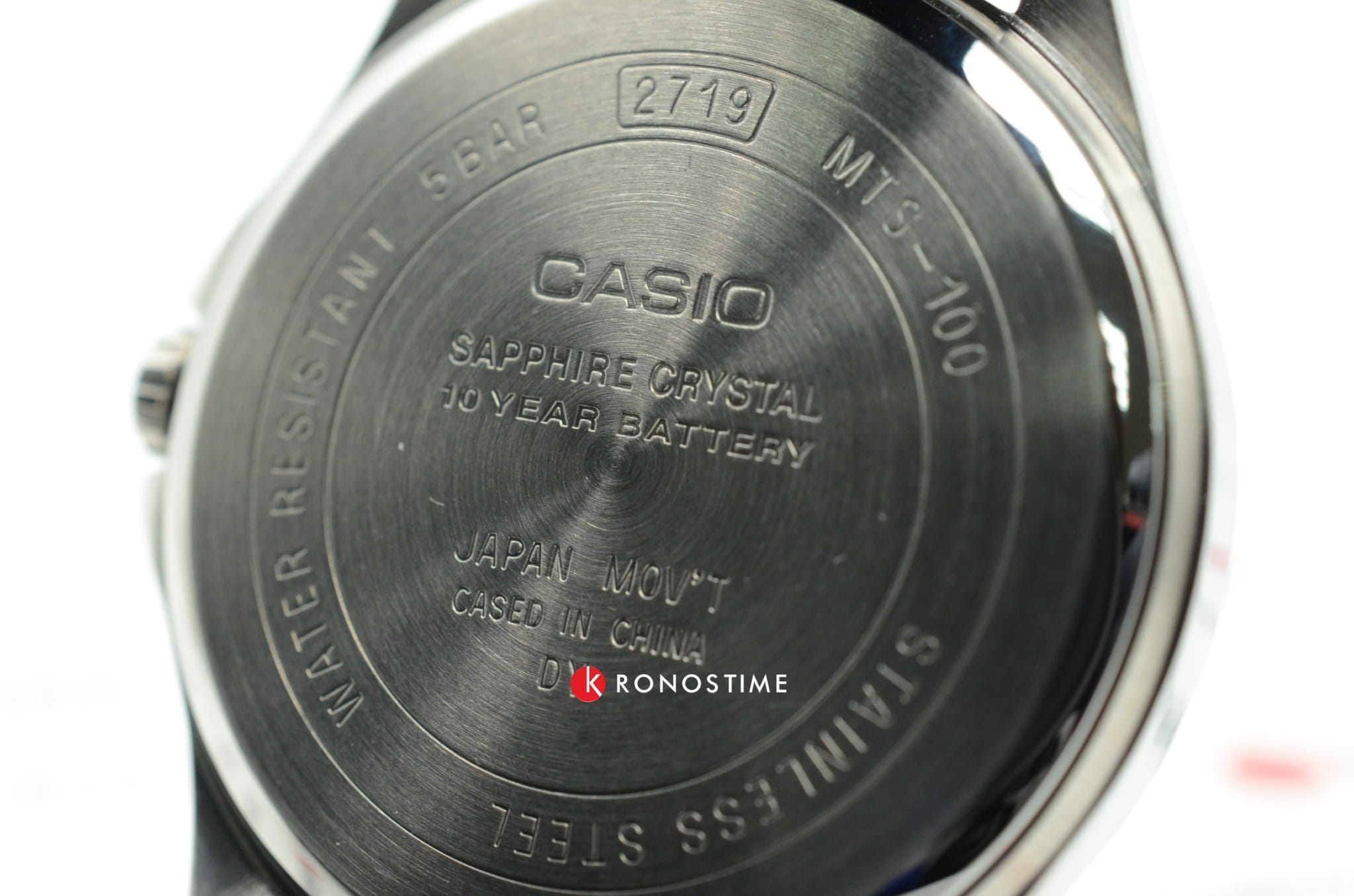 Японские мужские кварцевые часы с сапфировым стекломСапфировое стеклоПрочный и надёжный материал из кристалла сапфира синтетического происхождения, характеризующийся особой твёрдостью и устойчивостью к царапинам и повреждениям. Casio Collection MTS-100L-1A, кварцевый механизм с высокой точностью. Корпус часов изготовлен из нержавеющей. Подсветка NeobriteПодсветка NeobriteИспользование светонакопительных составов на основе сульфида цинка или алюмината стронция, яркий свет можно наблюдать на протяжении 6-10 часов после «зарядки» часов около источника света. обеспечивает длительное послесвечение в темноте даже после кратковременного нахождения на свету. Окошко даты находится в положении 3 часа. Батарея рассчитана на 10 лет. Заводная головка с защитой. Задняя крышка с винтовым фиксатором. Класс водозащиты: 50 метров, позволит защитить корпус от случайных брызг или капель дождя. Кожаный ремешок на стандартной застежке.