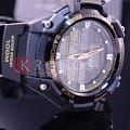 Спортивные японские мужские часы. Оснащены датчиком температуры, альтиметром, барометром и удобной электролюминесцентной подсветкой, освещающей весь циферблат. Корпус - Пластиковый; Стекло - Пластик; Водозащита - 100 м. (WR 100); Материал ремешка - Каучуковый; Цвет ремешка - Черный; Цвет циферблата - Lcd.