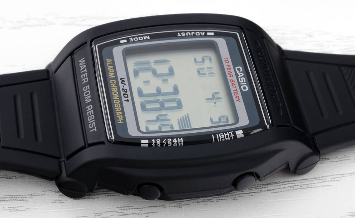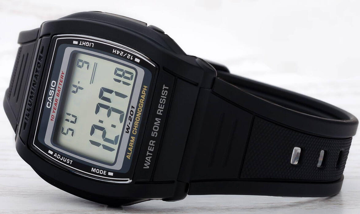 Мужские японские часы Casio Collection W-201-1AER из коллекции Illuminator являют собой идеальное дополнение к повседневному или спортивному стилю.