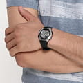 При создании аксессуара использованы высокопрочные полимерные материалы и нержавеющая сталь. Аксессуар оснащен таймером, секундомером и будильником с 5 независимыми сигналами. Встроен календарь, отображающий текущую дату, день и месяц. Светодиодная подсветкаСветодиодная подсветкаСветодиодная или LED-подсветка обеспечивает появление яркого холодного свечения за счёт LED-элементов - маленьких лампочек. Они потребляют минимальное количество энергии, чаще всего можно встретить 1 светодиод, в нижней части циферблата.. Электронный механизм.
