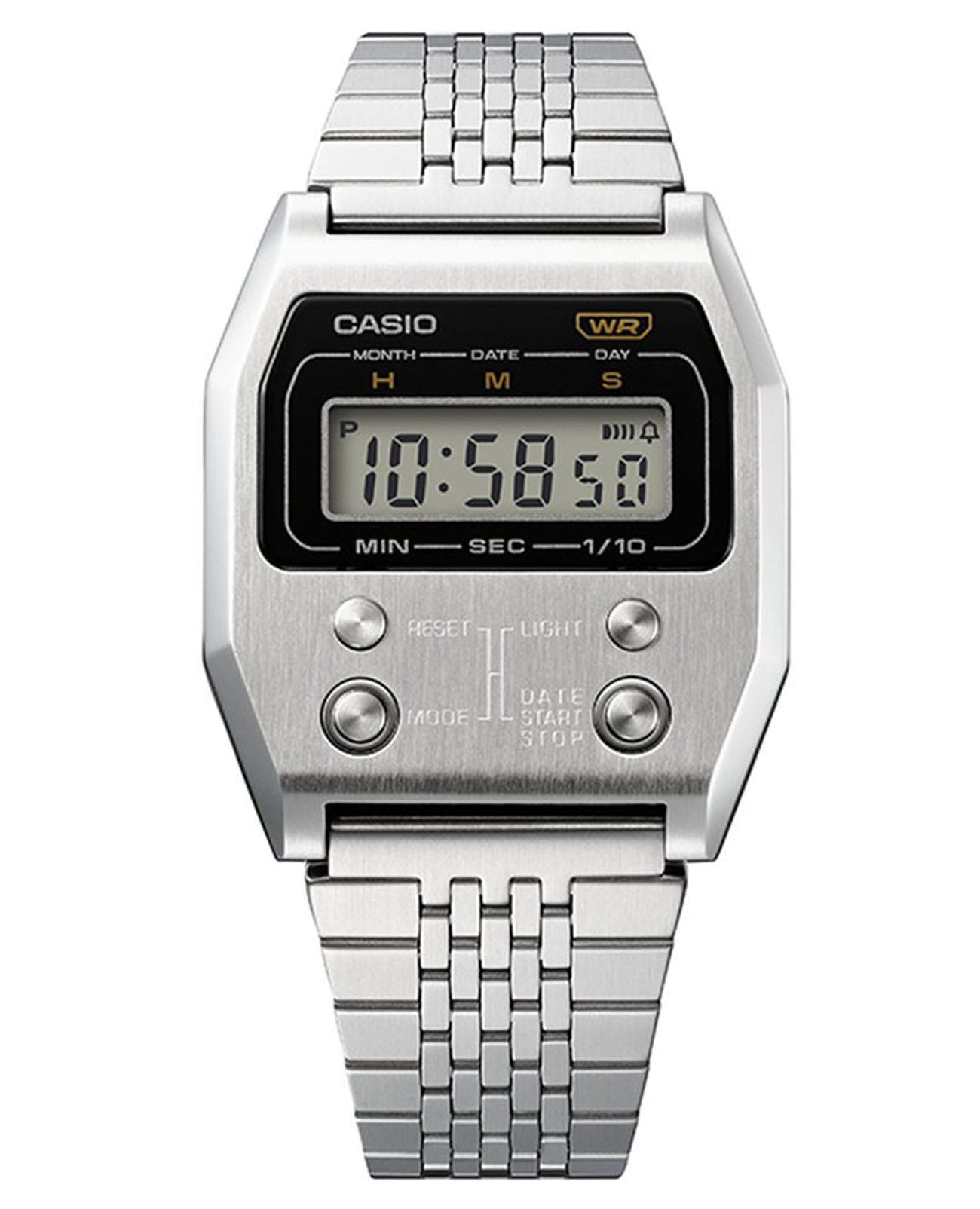 Спортивные японские мужские часы с секундомеромСекундомерСекундоме́р — прибор, способный измерять интервалы времени с точностью до долей секунды. Casio Vintage A1100D-1, кварцевый механизм с высокой точностью. Издавая звуковой сигнал в установленное время, будильникБудильникБуди́льник — часы, в заданный момент времени подающие звуковой, световой и/или в редких случаях другой сигнал. напоминает о событиях, которые повторяются каждый день. Корпус и браслет часов изготовлены из нержавеющей стали. Класс водозащиты: 30 метров, позволит защитить корпус от случайных брызг или капель дождя. Стальной браслет на раскладной застёжкеРаскладная застёжкаТакой тип застёжки используется только на браслетах из металла. Она никогда не раскрывается полностью, происходит разделение на 2 и более частей. Раскладывающая застёжка снизит вероятность потери часов к минимуму..