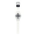 Кварцевым механизм высокой точности. Корпус часов изготовлен из полимерного пластика белого цвета. Функции: Сплит-хронографСплит-хронографИспользуется для измерения продолжительности нескольких временных отрезков, начинающихся одновременно, а заканчивающихся в разное время., Мировое времяМировое время Полезное часовое усложнение, отображающее время в основных городах и известных областях по всему миру, оно связано с часовыми поясами, удобно для путешественников и бизнесменов. , светодиодная подсветкаСветодиодная подсветкаСветодиодная или LED-подсветка обеспечивает появление яркого холодного свечения за счёт LED-элементов - маленьких лампочек. Они потребляют минимальное количество энергии, чаще всего можно встретить 1 светодиод, в нижней части циферблата., секундомерСекундомерСекундоме́р — прибор, способный измерять интервалы времени с точностью до долей секунды., таймерТаймерОтсчитывает секунды в обратном направлении в заданном интервале времени., будильникБудильникБуди́льник — часы, в заданный момент времени подающие звуковой, световой и/или в редких случаях другой сигнал., автоматический календарь, 12/24 отображение времени. Минеральное стекло, корпус и ремешок из полимерного пластика, водонепроницаемость (20 бар). Габариты (Ш x В x Г) 43,4 х 46,3 х 15,8. Вес 47 г.