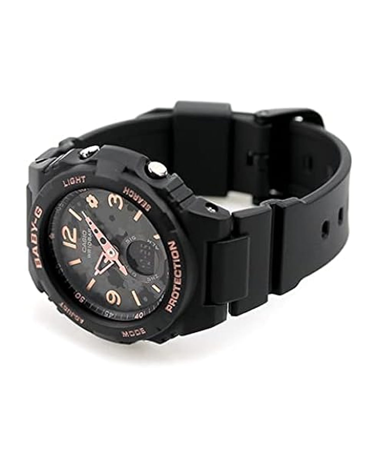 Японские женские часы-хронографХронографФункция позволяет измерять отрезки времени с особой точностью: часы, минуты, секунды. Верным признаком хронографа является наличие на циферблате 3 дополнительных окошек-счётчиков. Casio Baby-G BGA-260FL-1ADR из коллекции Baby-G. Минеральное стеклоМинеральное стеклоМинеральное стекло представляет собой искусственно выращенный минерал кварца. Такое стекло отличается особой устойчивостью к повреждениям и царапинам. Уступает по некоторым качествам сапфировому стеклу. устойчивое к появлению царапин, обладающее высокой прозрачностью. Корпус часов изготовлен из полимерного материала. Светодиодная подсветкаСветодиодная подсветкаСветодиодная или LED-подсветка обеспечивает появление яркого холодного свечения за счёт LED-элементов - маленьких лампочек. Они потребляют минимальное количество энергии, чаще всего можно встретить 1 светодиод, в нижней части циферблата. с функцией послесвечения. Ударопрочный корпусУдаропрочный корпусМеханизм заключён в корпус, выполненный из современных материалов, устойчивых к ударам, механическим повреждениям и падению с высоты: инновационный пластик, карбон, нержавеющая сталь, титан. защищает механизм от ударов и вибрации. Функция Мирового времениМировое время Полезное часовое усложнение, отображающее время в основных городах и известных областях по всему миру, оно связано с часовыми поясами, удобно для путешественников и бизнесменов. , автоматический переход на зимнее и летнее время, возможность включения/отключения данной функции. СекундомерСекундомерСекундоме́р — прибор, способный измерять интервалы времени с точностью до долей секунды. с точностью измерения 1/100 секунды и измерением до 23 часов 59 минут 59,99 cек. ТаймерТаймерОтсчитывает секунды в обратном направлении в заданном интервале времени. обратного отсчета (диапазон времени 24 часа), автоматический календарь, 12/24 отображение времени. 5 ежедневных будильниковБудильникБуди́льник — часы, в заданный момент времени подающие звуковой, световой и/или в редких случаях другой сигнал.. Отображение сведений о приливах и отливах (уровень прилива на ближайшие 12 часов, и на определенную дату и время). Функция включения/отключения звука кнопок. Функция перемещения стрелок. Класс водозащиты: 100 метров, позволит плавать без погружения. Ремешок из полимерного материала на стандартной застежке.