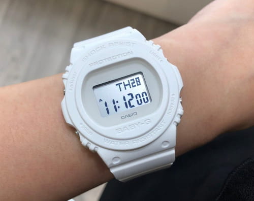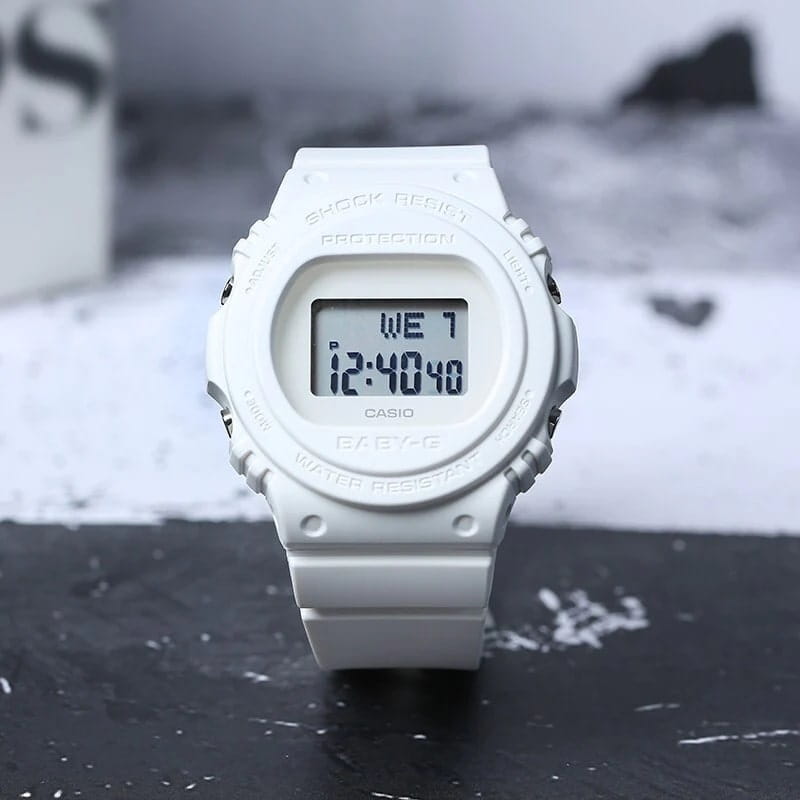 Женские японские ударопрочныеУдаропрочный корпусМеханизм заключён в корпус, выполненный из современных материалов, устойчивых к ударам, механическим повреждениям и падению с высоты: инновационный пластик, карбон, нержавеющая сталь, титан. наручные часы Casio Baby-G BGD-570-7, электронный механизм с высокой точностью. Класс водозащиты: 200 метров, позволит плавать, нырять и заниматься другими водными видами спорта. Корпус часов изготовлен из пластика. Ударопрочный корпусУдаропрочный корпусМеханизм заключён в корпус, выполненный из современных материалов, устойчивых к ударам, механическим повреждениям и падению с высоты: инновационный пластик, карбон, нержавеющая сталь, титан. защищает механизм от ударов и вибрации. Электролюминесцентная подсветкаЭлектролюминесцентная подсветкаЭлектролюминесцентная панель устанавливается под ЖК-экраном часов, при нажатии кнопки электричество преобразуется в свет за счёт подачи напряжения на атомы фосфора, такой тип подсветки позволяет освещать весь циферблат. освещает весь циферблат, после отпускания кнопки свечение продолжается еще некоторое время. Настраиваемое послесвечение 1,5 или 3сек. Цвет подсветки: сине-зеленый. 12-ти и 24-х часовой формат времени. СекундомерСекундомерСекундоме́р — прибор, способный измерять интервалы времени с точностью до долей секунды. с точностью показаний 1/100с и временем измерения 1ч. Сплит-хронографСплит-хронографИспользуется для измерения продолжительности нескольких временных отрезков, начинающихся одновременно, а заканчивающихся в разное время.. ТаймерТаймерОтсчитывает секунды в обратном направлении в заданном интервале времени. обратного отсчета от 1мин до 24ч. Мировое времяМировое время Полезное часовое усложнение, отображающее время в основных городах и известных областях по всему миру, оно связано с часовыми поясами, удобно для путешественников и бизнесменов. – 48 городов (29 часовых поясов). Функции включения/отключения летнего времени и включения/отключения звука. Батарея рассчитана на 3 года. Стальная задняя крышка крепится на 4-х винтах. Ремешок с классической застежкой.