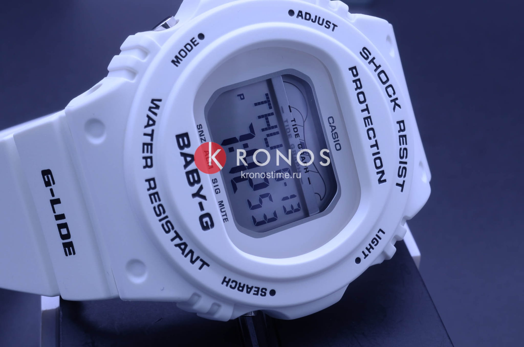 Модель G-Lide с цифровым дисплеем в белом противоударном корпусеУдаропрочный корпусМеханизм заключён в корпус, выполненный из современных материалов, устойчивых к ударам, механическим повреждениям и падению с высоты: инновационный пластик, карбон, нержавеющая сталь, титан. поможет завершить повседневный образ. Покорение водной стихии теперь стало лёгким делом благодаря отображению лунных фаз, составлению графика приливов и отливов. Японский кварцевый механизм. Минеральное стекло. Удобный полимерный ремешок. Электролюминесцентная подсветкаЭлектролюминесцентная подсветкаЭлектролюминесцентная панель устанавливается под ЖК-экраном часов, при нажатии кнопки электричество преобразуется в свет за счёт подачи напряжения на атомы фосфора, такой тип подсветки позволяет освещать весь циферблат.. Водостойкость до 200 метров. Повышенная ударопрочность. секундомер, будильник с функцией «подремать», мировое времяМировое время Полезное часовое усложнение, отображающее время в основных городах и известных областях по всему миру, оно связано с часовыми поясами, удобно для путешественников и бизнесменов. – 48 городов, вечный календарьВечный календарьКлассическое часовое усложнение, представляющее собой календарь, рассчитанный на несколько лет вперёд (стандартно – до 2099 года). Определяет текущую дату, день недели, месяц., таймер, хронографХронографФункция позволяет измерять отрезки времени с особой точностью: часы, минуты, секунды. Верным признаком хронографа является наличие на циферблате 3 дополнительных окошек-счётчиков.. Габариты: 44,9 x 43 x 12,9 мм.