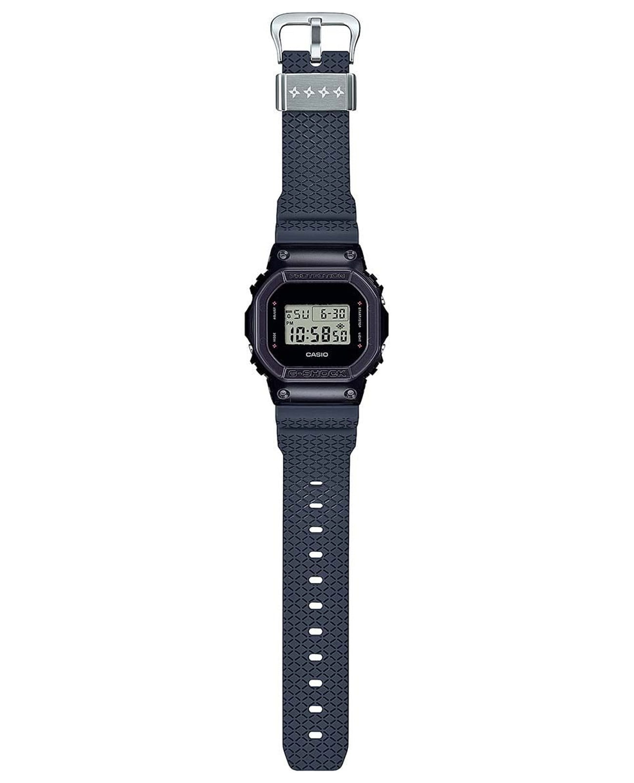 Японские мужские часы Casio G-Shock DW-5600NNJ-2ER. Следуйте по стопам легендарных японских ниндзя. G-SHOCK теперь перенесет вас в мир древних японских боевых искусств, тайн и интриг. Эти часы украшены вставками в виде звезд ниндзя из сюрикена на циферблате, подсветке, петельке ремешка и задней крышке корпуса. Каждый из них выводит дизайн на совершенно новый уровень, вдохновленный различными ниндзюцу, легендарными навыками, которые являются искусством ниндзя. Корпус изготовлен из полимерного материала. Минеральное стеклоМинеральное стеклоМинеральное стекло представляет собой искусственно выращенный минерал кварца. Такое стекло отличается особой устойчивостью к повреждениям и царапинам. Уступает по некоторым качествам сапфировому стеклу. устойчивое к появлению царапин, обладающее высокой прозрачностью. Светодиодная подсветкаСветодиодная подсветкаСветодиодная или LED-подсветка обеспечивает появление яркого холодного свечения за счёт LED-элементов - маленьких лампочек. Они потребляют минимальное количество энергии, чаще всего можно встретить 1 светодиод, в нижней части циферблата. (Super Illuminator), послесвечение. 12/24-часовой формат. вечный календарьВечный календарьКлассическое часовое усложнение, представляющее собой календарь, рассчитанный на несколько лет вперёд (стандартно – до 2099 года). Определяет текущую дату, день недели, месяц.. СекундомерСекундомерСекундоме́р — прибор, способный измерять интервалы времени с точностью до долей секунды.. ТаймерТаймерОтсчитывает секунды в обратном направлении в заданном интервале времени.. Часовой сигнал времени. Многофункциональный будильник. Оповещение о вспышке мигает с зуммером, который сигнализирует о тревогах, сигналах часового времени, сигнале таймера обратного отсчета времени. Класс водозащиты: 200 метров, позволит плавать, нырять и заниматься другими водными видами спорта. Ремешок из полимерного материала на стандартной застежке.