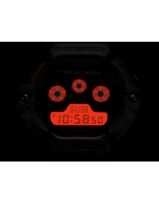 Японские мужские часы DW-5900NH-1DR из коллекции G-Shock с противоударным корпусомУдаропрочный корпусМеханизм заключён в корпус, выполненный из современных материалов, устойчивых к ударам, механическим повреждениям и падению с высоты: инновационный пластик, карбон, нержавеющая сталь, титан. - идеальный аксессуар для повседневного ношения. Модель представлена в чёрном матовом исполнении, яркой деталью стала красная электролюминесцентная подсветкаЭлектролюминесцентная подсветкаЭлектролюминесцентная панель устанавливается под ЖК-экраном часов, при нажатии кнопки электричество преобразуется в свет за счёт подачи напряжения на атомы фосфора, такой тип подсветки позволяет освещать весь циферблат. циферблата. Такой акцент придаёт аксессуару некую динамику и спортивный накал. Наручные часы имеют широкий функционал: таймер с автоповтором, секундомер, будильник, автоматический календарь, мировое время. Батарейка рассчитана на 5 лет работы. Минеральное стекло. Водостойкость до 20 бар. 12/24-часовое отображение времени. Габариты: 51.4x 46.8 x 15.5 мм.