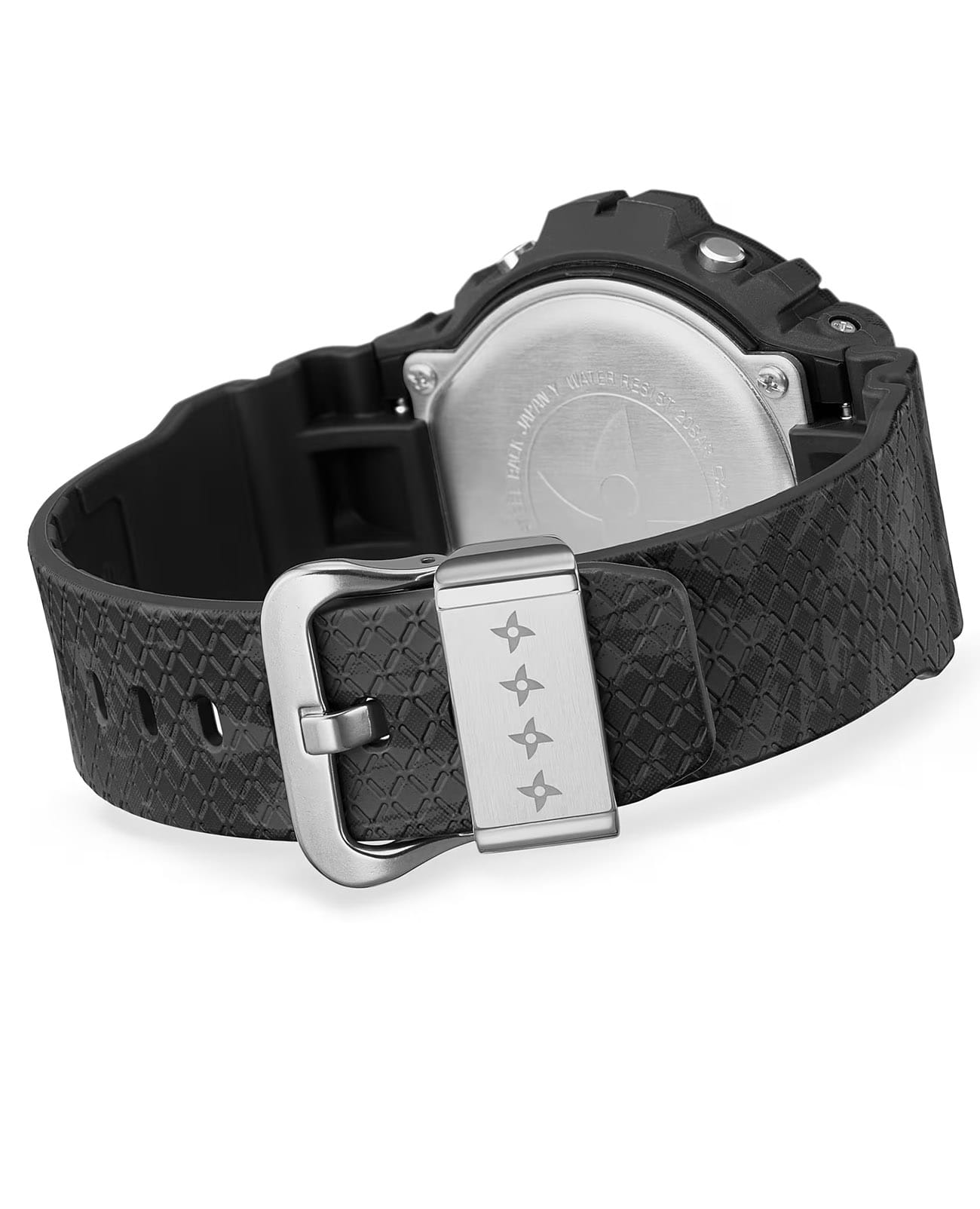 Японские мужские часы Casio G-Shock DW-6900NNJ-1. Следуйте по стопам легендарных японских ниндзя. G-SHOCK теперь перенесет вас в мир древних японских боевых искусств, тайн и интриг. Эти часы украшены вставками в виде звезд ниндзя из сюрикена на циферблате, подсветке, петельке ремешка и задней крышке корпуса. Каждый из них выводит дизайн на совершенно новый уровень, вдохновленный различными ниндзюцу, легендарными навыками, которые являются искусством ниндзя. Ударопрочный корпусУдаропрочный корпусМеханизм заключён в корпус, выполненный из современных материалов, устойчивых к ударам, механическим повреждениям и падению с высоты: инновационный пластик, карбон, нержавеющая сталь, титан. из полимерного материала защищает механизм от ударов и вибрации. Минеральное стеклоМинеральное стеклоМинеральное стекло представляет собой искусственно выращенный минерал кварца. Такое стекло отличается особой устойчивостью к повреждениям и царапинам. Уступает по некоторым качествам сапфировому стеклу. устойчивое к появлению царапин, обладающее высокой прозрачностью. Светодиодная подсветкаСветодиодная подсветкаСветодиодная или LED-подсветка обеспечивает появление яркого холодного свечения за счёт LED-элементов - маленьких лампочек. Они потребляют минимальное количество энергии, чаще всего можно встретить 1 светодиод, в нижней части циферблата., послесвечение. 12/24-часовой формат. вечный календарьВечный календарьКлассическое часовое усложнение, представляющее собой календарь, рассчитанный на несколько лет вперёд (стандартно – до 2099 года). Определяет текущую дату, день недели, месяц.. СекундомерСекундомерСекундоме́р — прибор, способный измерять интервалы времени с точностью до долей секунды.. ТаймерТаймерОтсчитывает секунды в обратном направлении в заданном интервале времени.. Часовой сигнал времени. Многофункциональный будильник. Класс водозащиты: 200 метров, позволит плавать, нырять и заниматься другими водными видами спорта. Ремешок из полимерного материала на стандартной застежке.