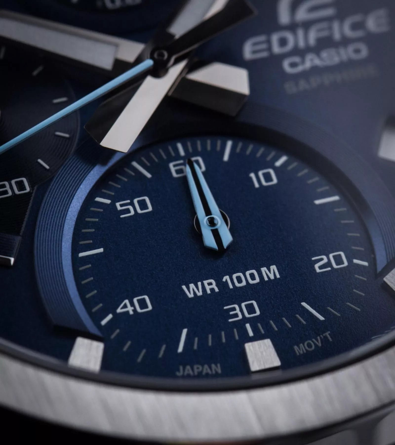 Японские мужские часы с сапфировым стеклом и хронографом Casio Edifice EFB-700D-2A, кварцевый механизм с высокой точностью. Сапфировое стекло устойчивое к появлению царапин, обладающее высокой прозрачностью. Класс водозащиты: 100 метров, позволит плавать, нырять и заниматься другими водными видами спорта. Корпус часов изготовлен из стали, серебристого цвета.