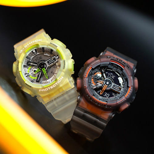 Японские мужские часы GA-110LS-7AER из коллекции G-Shock представлены в спортивном облачении, но их лаймовый оттенок позволяет продемонстрировать изысканную натуру.