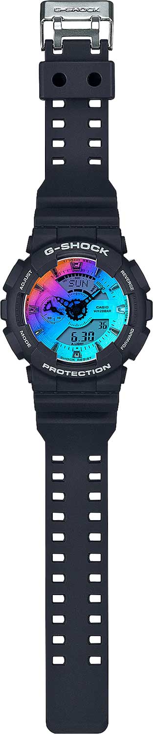 Casio GA-110SKE-8AER современные часы в ударопрочном корпусе, с удобным элементом управления в виде колеса прокрутки. Минеральное стекло, устойчивое к появлению царапин. Корпус часов выполнен в черной цветовой гамме, часы прочно удерживаются на руке браслетом из полимерного пластика. Часы GA-110SKE-8AER снабжены множеством дополнительных функций - повтор будильника, автоматический календарь. Ежечасный сигнал, повтор сигнала будильника, мировое время. Водонепроницаемость часов до 200 метров. Магнитоустойчивые.  Элемент питания CR1220, точность хода +\- 15 сек.в месяц.