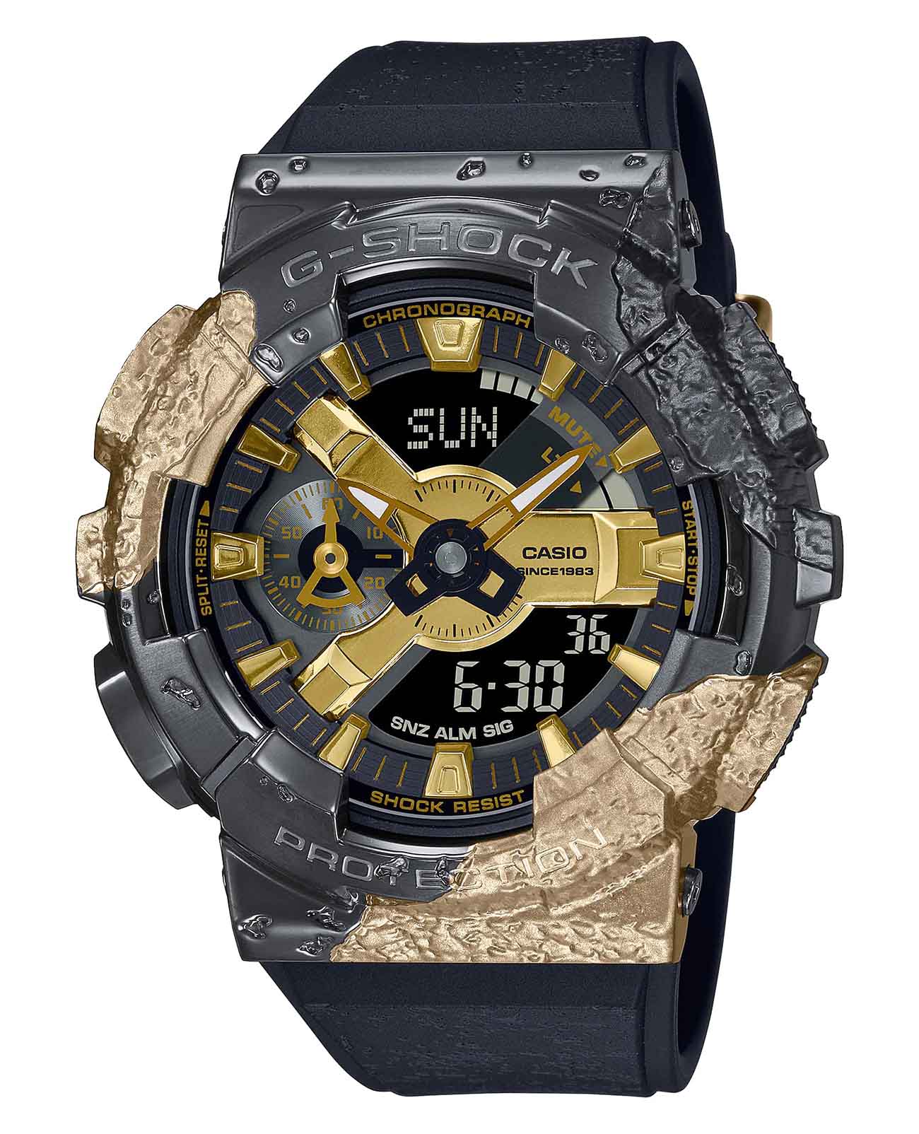 Японские мужские часы-хронографХронографФункция позволяет измерять отрезки времени с особой точностью: часы, минуты, секунды. Верным признаком хронографа является наличие на циферблате 3 дополнительных окошек-счётчиков. Casio G-Shock GM-114GEM-1A9 из коллекции G-Shock. Модель часов из серии G-SHOCK как всегда выполнены в лучших традициях японского качества. G-Shock 40th Anniversary. Лимитированная серия посвящена 40-летию G-SHOCK. Вдохновением послужили камни и различные минералы, которые использовали путешественники в Средние века в качестве примитивного компаса. БезельБезельВнешний ободок, закрепляющий стекло. В спортивных часах так называется поворотное кольцо с делениями на циферблате, выполняет роль таймера – замеряет отрезки времени на шкале. Неподвижный безель – элемент декора. Однонаправленно вращающийся безель на дайверских часах позволяет фиксировать моменты погружения и выныривания на поверхность. данной модели выполнен путем горячей ковки и по текстуре напоминает минерал кальцит. Задняя крышка крепится на 4-х винтах и украшена логотипом, созданным граффити-художником Эриком Хейзом в ознаменование 40-летия G-SHOCK. Минеральное стеклоМинеральное стеклоМинеральное стекло представляет собой искусственно выращенный минерал кварца. Такое стекло отличается особой устойчивостью к повреждениям и царапинам. Уступает по некоторым качествам сапфировому стеклу. устойчивое к появлению царапин, обладающее высокой прозрачностью. Ударопрочный корпусУдаропрочный корпусМеханизм заключён в корпус, выполненный из современных материалов, устойчивых к ударам, механическим повреждениям и падению с высоты: инновационный пластик, карбон, нержавеющая сталь, титан. защищает механизм от ударов и вибрации. Светодиодная автоподсветка NeobriteПодсветка NeobriteИспользование светонакопительных составов на основе сульфида цинка или алюмината стронция, яркий свет можно наблюдать на протяжении 6-10 часов после «зарядки» часов около источника света. - при повороте часов в сторону лица подсветка дисплея осуществляется автоматически. Настраиваемое послесвечение 1,5 или 3сек. Мировое времяМировое время Полезное часовое усложнение, отображающее время в основных городах и известных областях по всему миру, оно связано с часовыми поясами, удобно для путешественников и бизнесменов. – 48 городов (29 часовых поясов). СекундомерСекундомерСекундоме́р — прибор, способный измерять интервалы времени с точностью до долей секунды. с точностью измерения 1/100 секунды и измерением до 23 часов 59 минут 59,99 cек. ТаймерТаймерОтсчитывает секунды в обратном направлении в заданном интервале времени. обратного отсчета (диапазон времени 24 часа), автоматический календарь, 12/24 отображение времени. будильниковБудильникБуди́льник — часы, в заданный момент времени подающие звуковой, световой и/или в редких случаях другой сигнал., один с функцией Snooze, ежечасный сигнал. Переключение между домашним и мировым временем. Класс водозащиты: 200 метров, позволит плавать, нырять и заниматься другими водными видами спорта. Ремешок из полимерного материала на стандартной застежке.