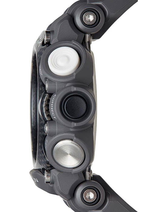 Наручные часы в тёмной расцветке помогут всегда находиться в центре внимания, они станут выигрышной деталью любого образа. Разработчики Casio выбрали для этой модели обновлённый противоударный корпусУдаропрочный корпусМеханизм заключён в корпус, выполненный из современных материалов, устойчивых к ударам, механическим повреждениям и падению с высоты: инновационный пластик, карбон, нержавеющая сталь, титан., реализовав технологию Carbon Core GuardCarbon Core Guard Новейшая структура корпуса, разработанная Casio. Полиуретановая пластина дополнительно усилена карбоновыми вставками, что придаёт специальную защиту от механических повреждений. Карбон отличается лёгкостью и прочностью.. Двойная подсветка - люминесцентнаяЛюминесцентное покрытиеПозволяет считывать показания времени в темноте. Производители наносят на стрелки, часовые индексы, безель или поверхность циферблата светонакопительный состав, дающий холодное свечение. и светодиодная Светодиодная подсветкаСветодиодная или LED-подсветка обеспечивает появление яркого холодного свечения за счёт LED-элементов - маленьких лампочек. Они потребляют минимальное количество энергии, чаще всего можно встретить 1 светодиод, в нижней части циферблата.. Ремешок из полимерного материала. БезельБезельВнешний ободок, закрепляющий стекло. В спортивных часах так называется поворотное кольцо с делениями на циферблате, выполняет роль таймера – замеряет отрезки времени на шкале. Неподвижный безель – элемент декора. Однонаправленно вращающийся безель на дайверских часах позволяет фиксировать моменты погружения и выныривания на поверхность. из карбона. Минеральное стекло. Индикатор состояния заряда батарейки. Функции: BluetoothBluetoothСовременная технология, позволяющая синхронизировать часы с телефоном и переносить данные. Часы с Bluetooth расширяют возможности вашего смартфона и делают его использование ещё более удобным., будильник, секундомер, таймер, мировое времяМировое время Полезное часовое усложнение, отображающее время в основных городах и известных областях по всему миру, оно связано с часовыми поясами, удобно для путешественников и бизнесменов. , автоматический календарь. Габариты: 63 x 54,1 x 18,3 мм.