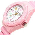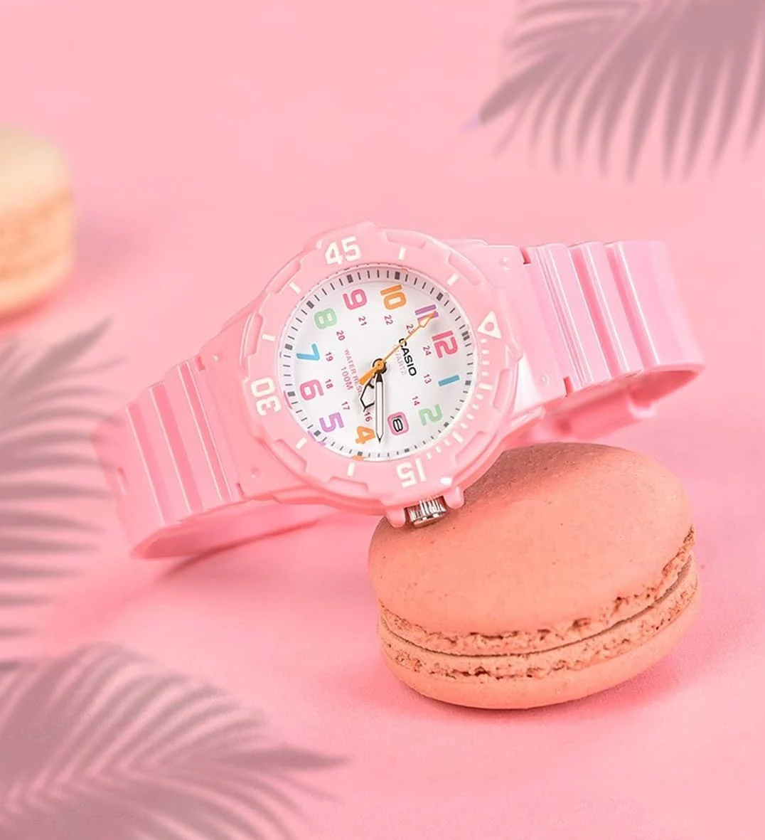 Часы в спортивном стиле полностью подойдут для пляжного отдыха. Корпус и браслет выполнены из высокопрочных полимерных материалов. На аккуратном циферблате расположены временные отметки в виде цветных арабских цифр и миниатюрное окошечко с календарем. Люминесцентная подсветкаЛюминесцентное покрытиеПозволяет считывать показания времени в темноте. Производители наносят на стрелки, часовые индексы, безель или поверхность циферблата светонакопительный состав, дающий холодное свечение.. Высокая водонепроницаемость в 100 WR идеально подходит для плавания в воде. Небольшой вес в 25 грамм не создаст ощущения тяжести при ношении аксессуара.